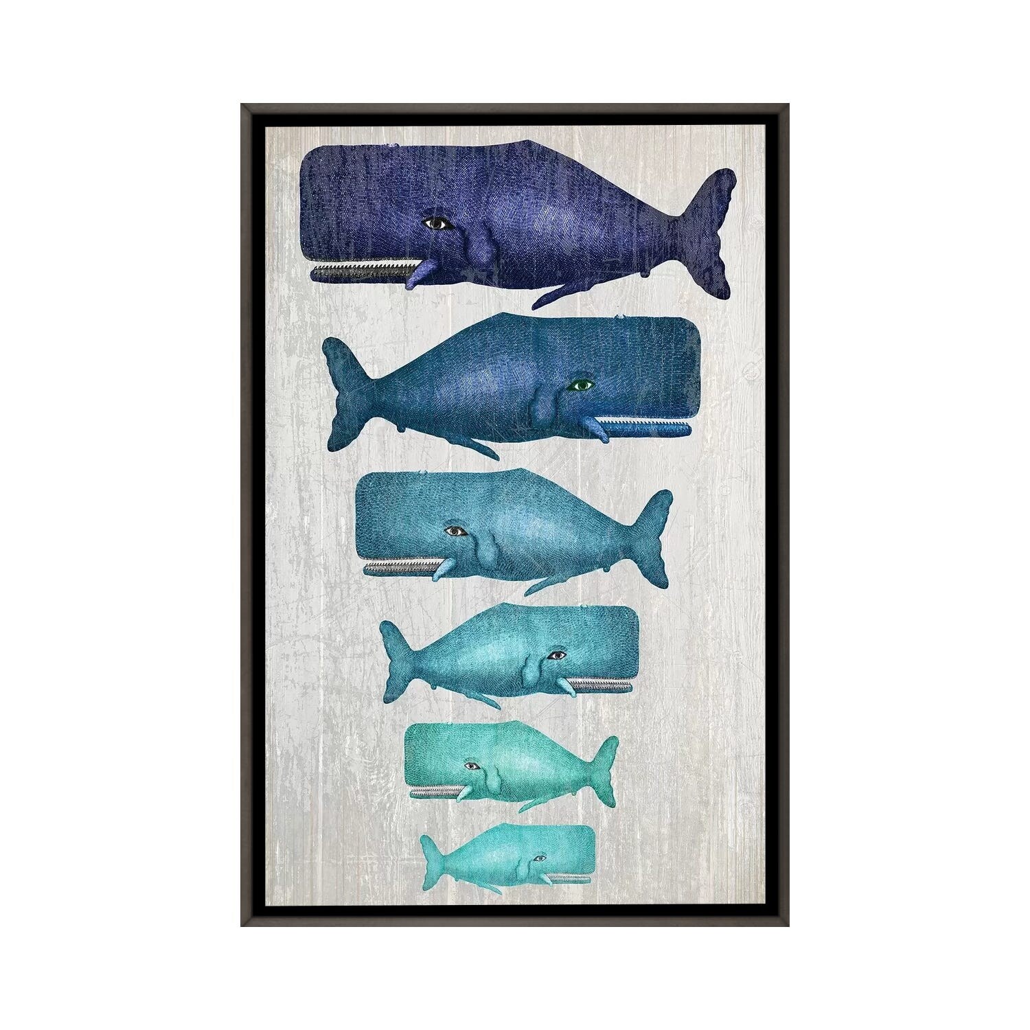 iCanvas "Whale Family Blue on White" by Fab Funky Framed