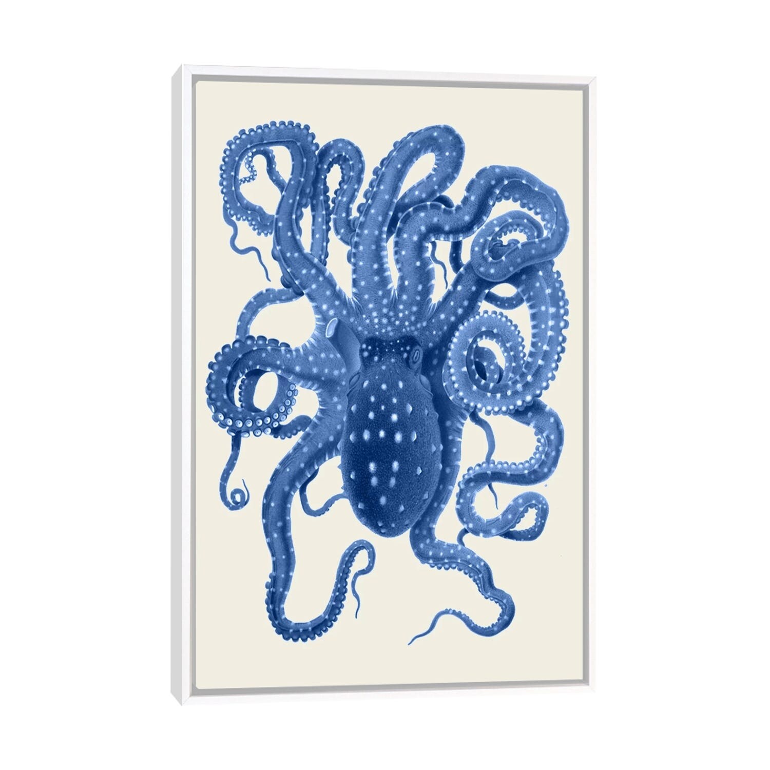 iCanvas "Blue Octopus on Cream I" by Fab Funky Framed
