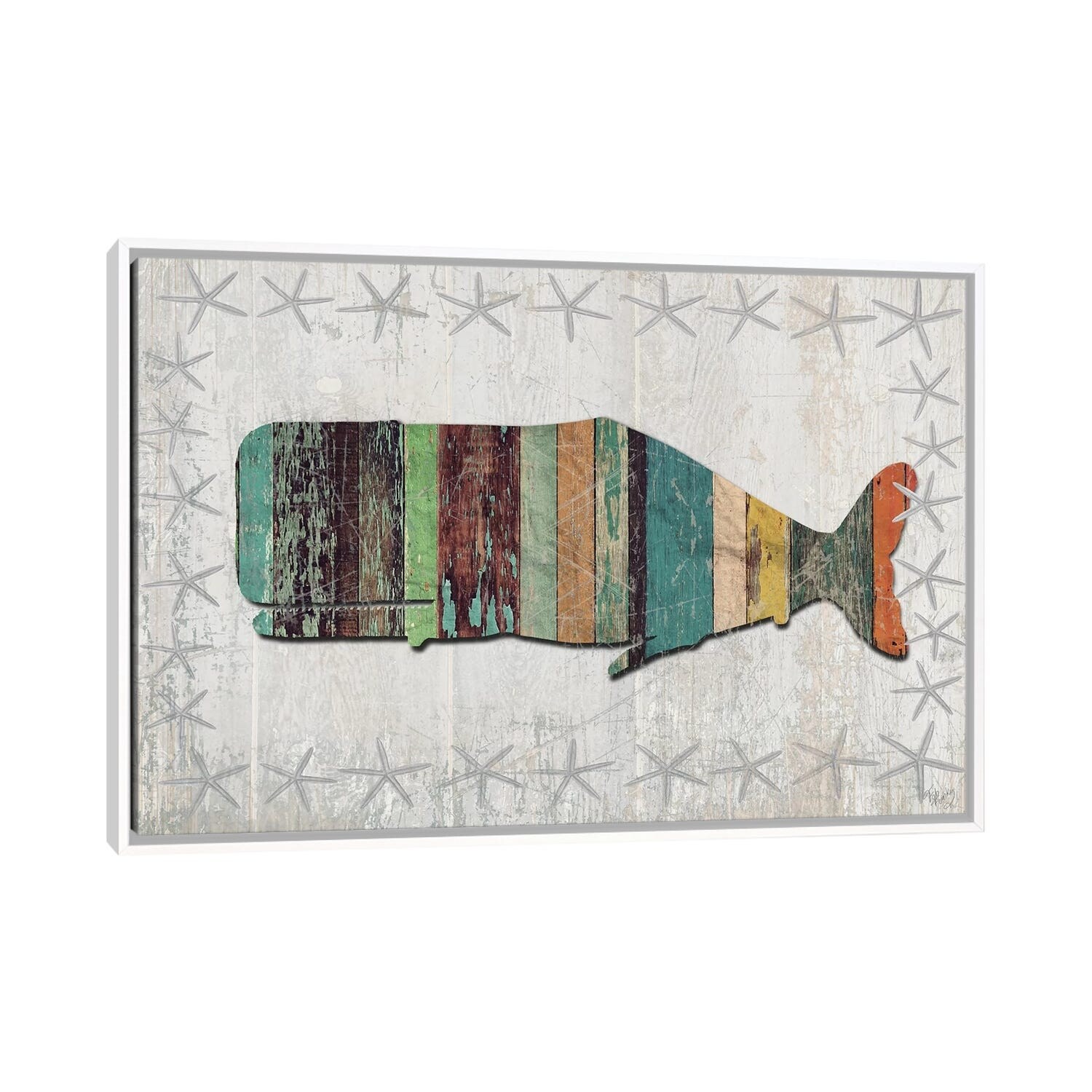 iCanvas "Distressed Wood Style, Whale" by Fab Funky Framed