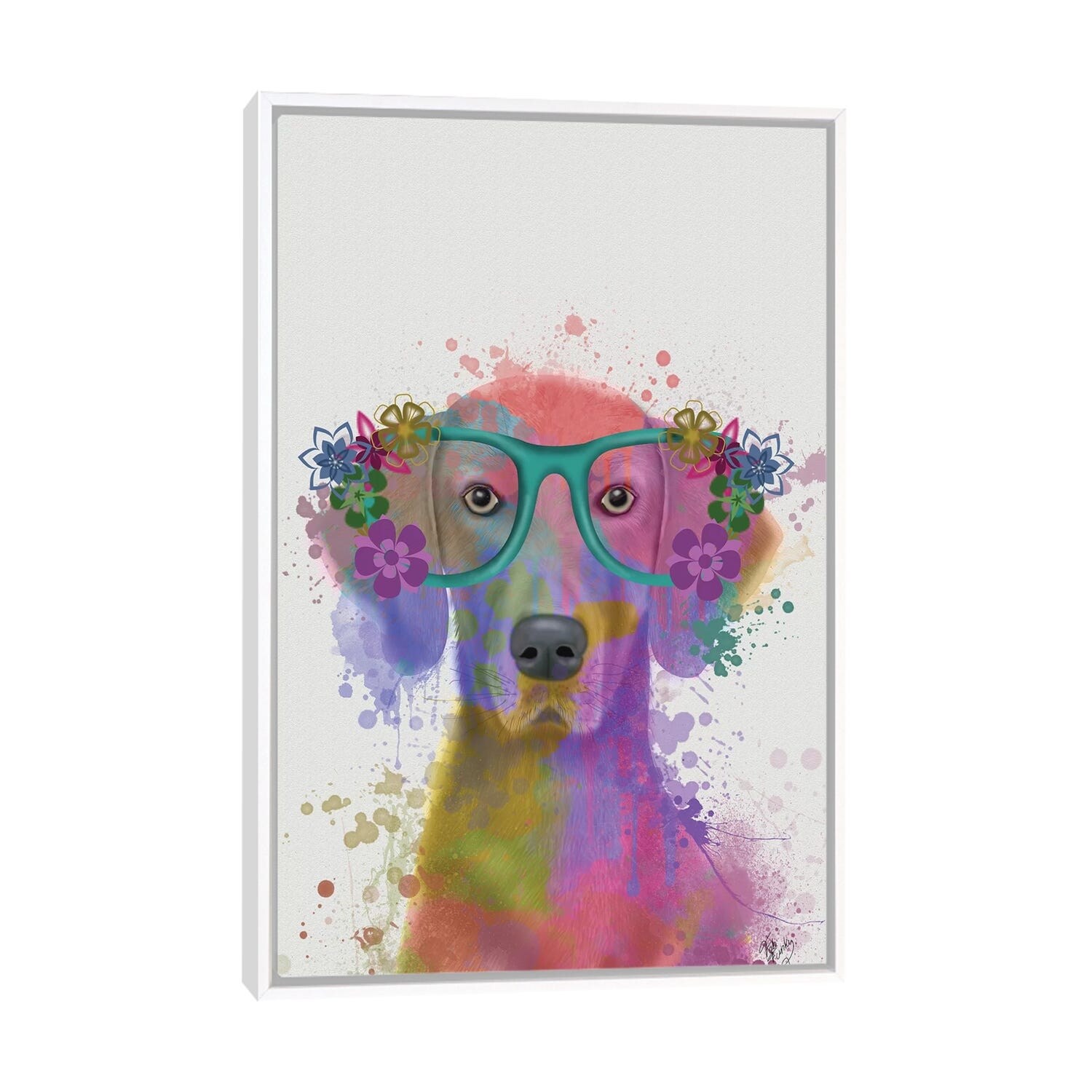 iCanvas "Rainbow Splash Weimaraner, Portrait" by Fab Funky Framed