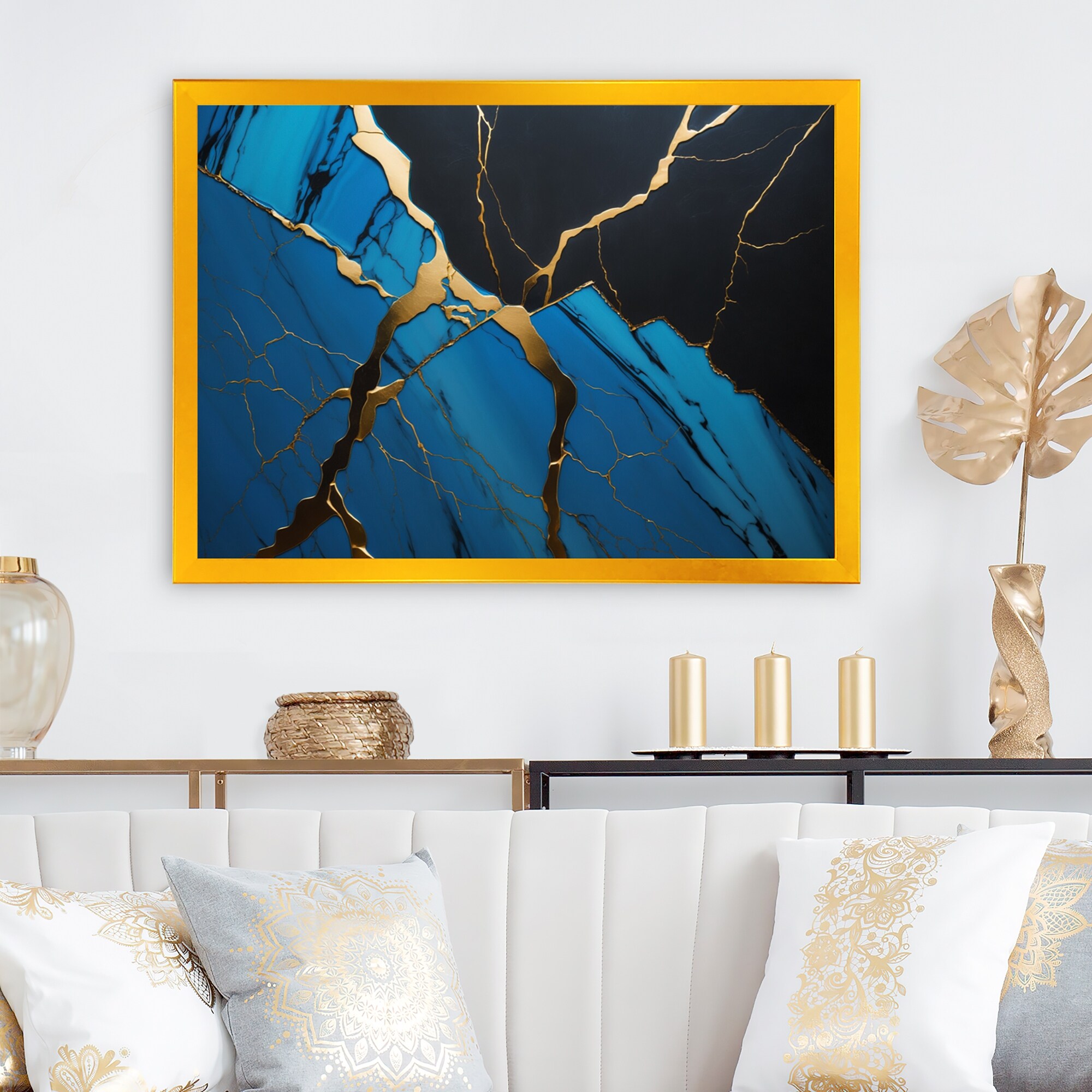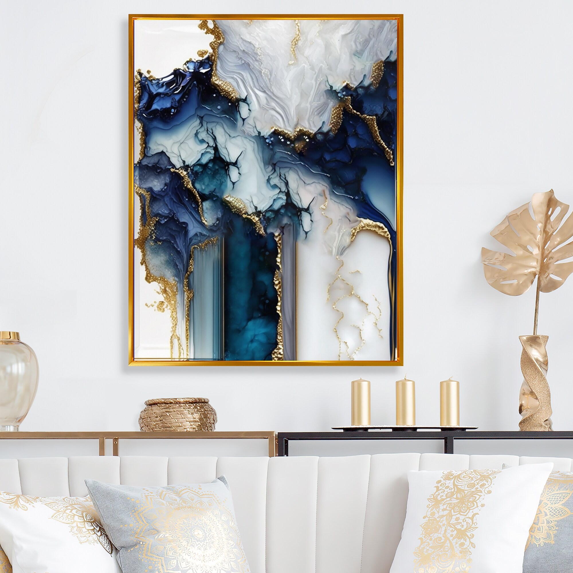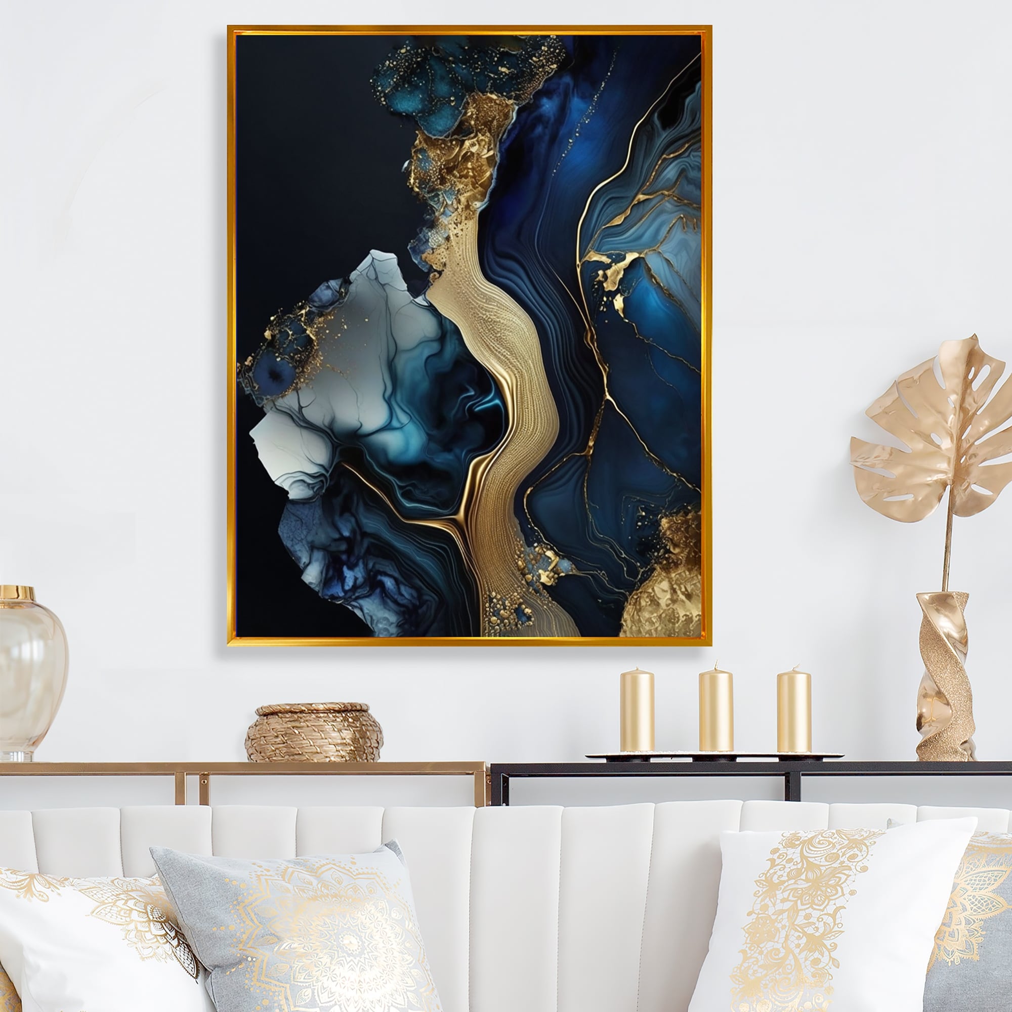 Designart "Abstract Geode Gold And Blue Marble V" Marble Abstract Framed Canvas Art Print