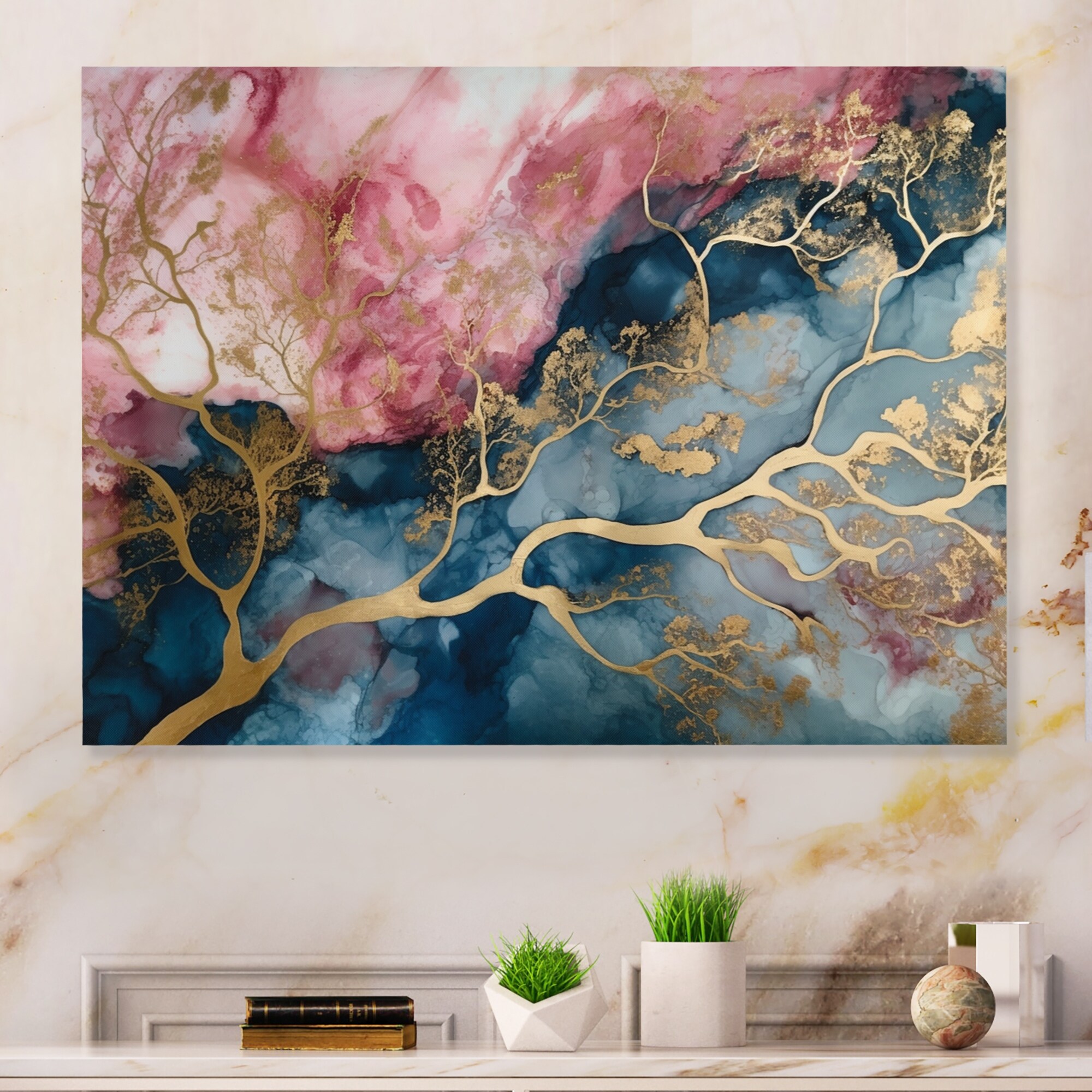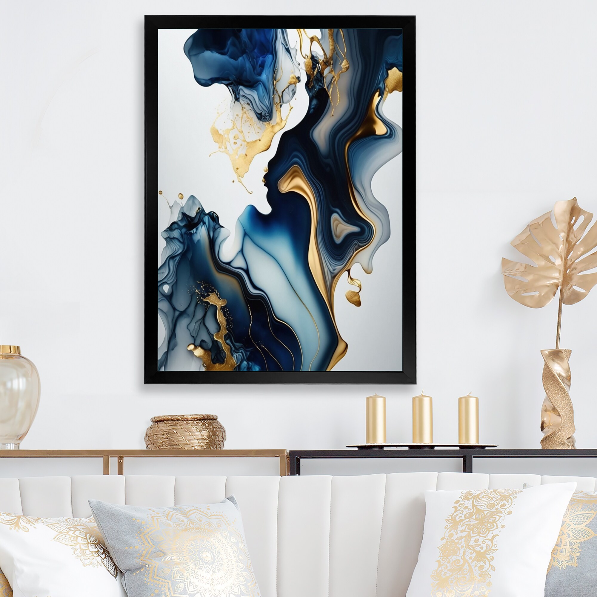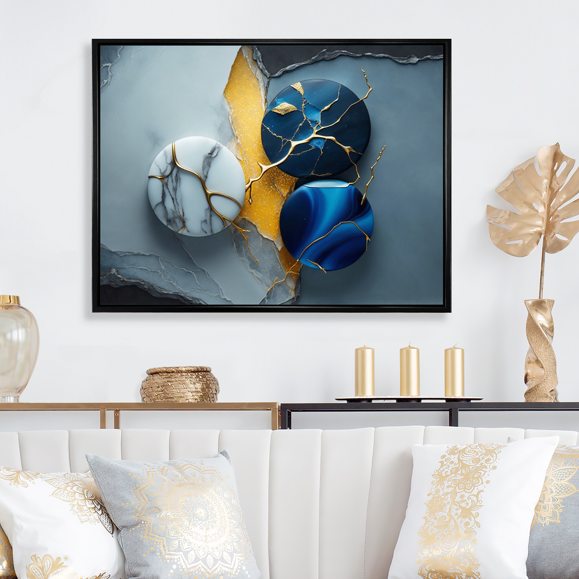 Designart "Abstract Geode Gold And Blue Marble V" Marble Abstract Framed Canvas Art Print