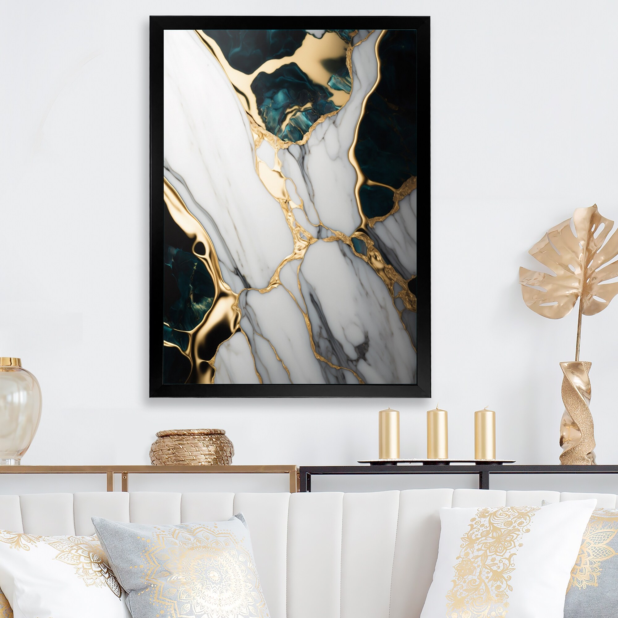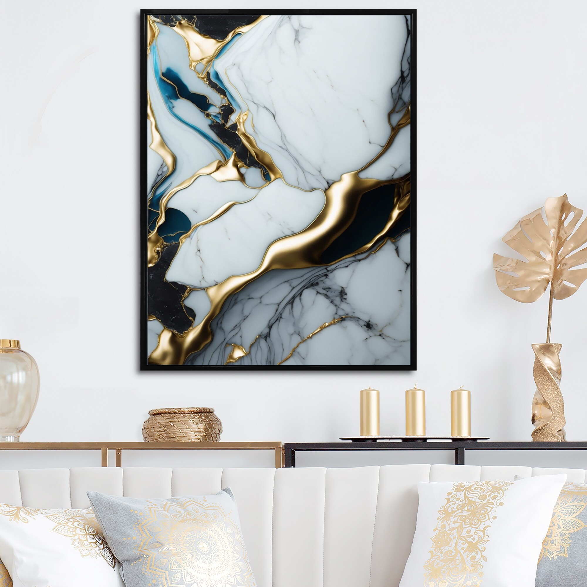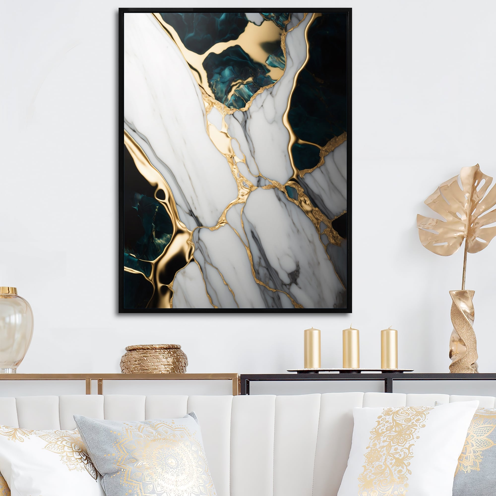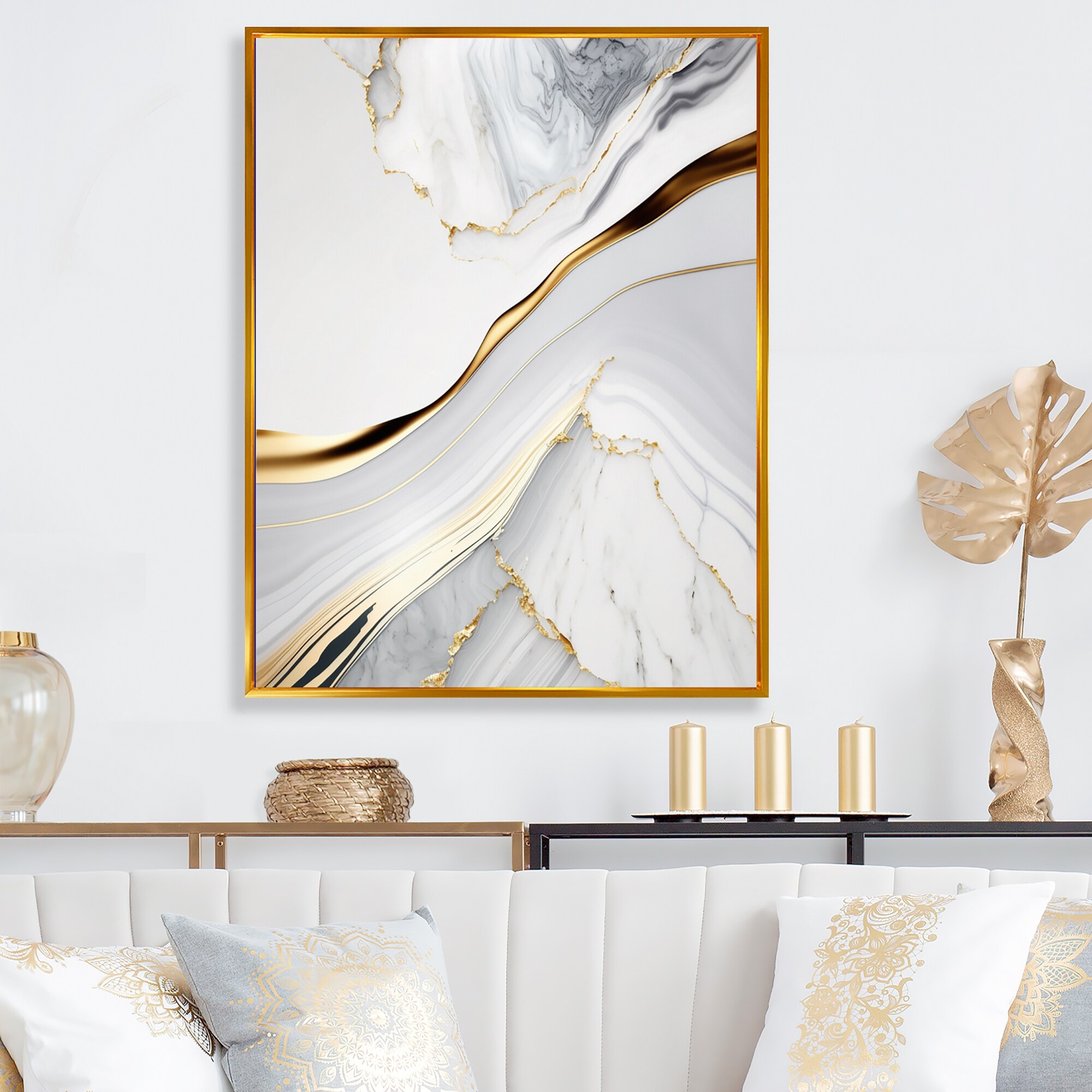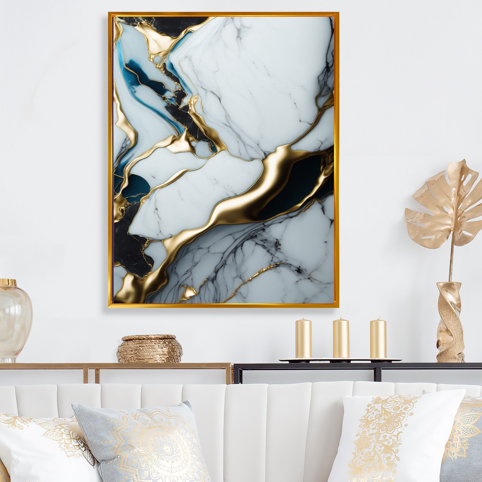Designart "Abstract Geode Gold And White Marble II" Marble Abstract Framed Canvas Art Print