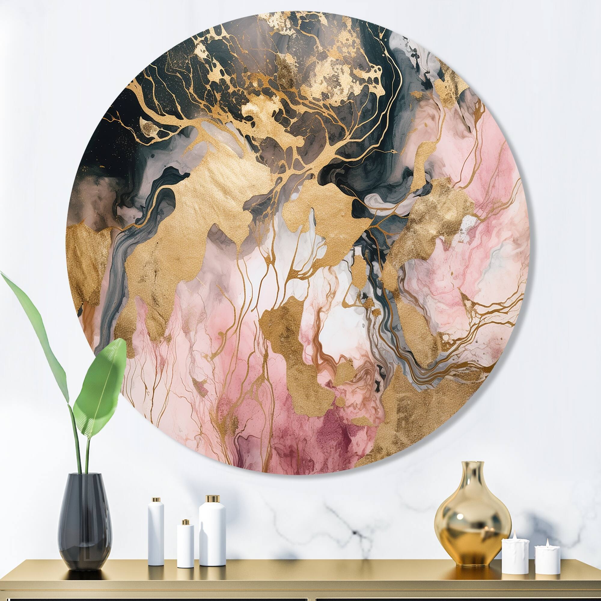 Designart "Exploring The Depths of Pink Geode II" Abstract Marble Metal Round Wall Art
