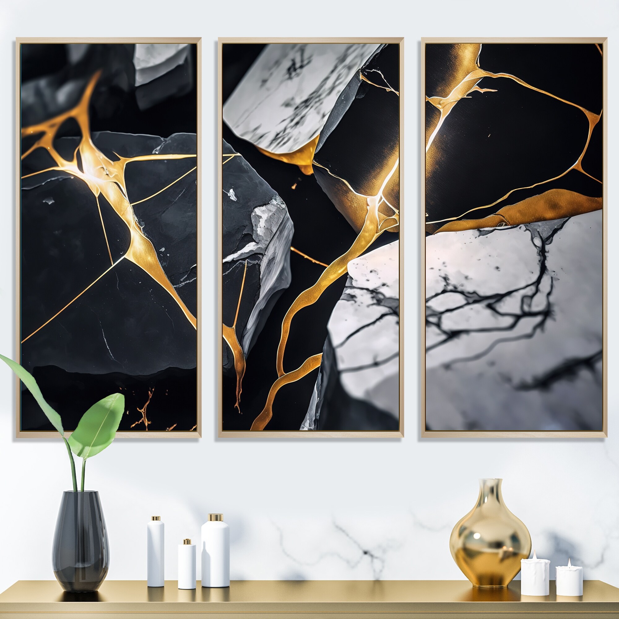 Designart "Abstract Geode Gold Marble II" Abstract Marble Framed Canvas Art Print - 3 Panels