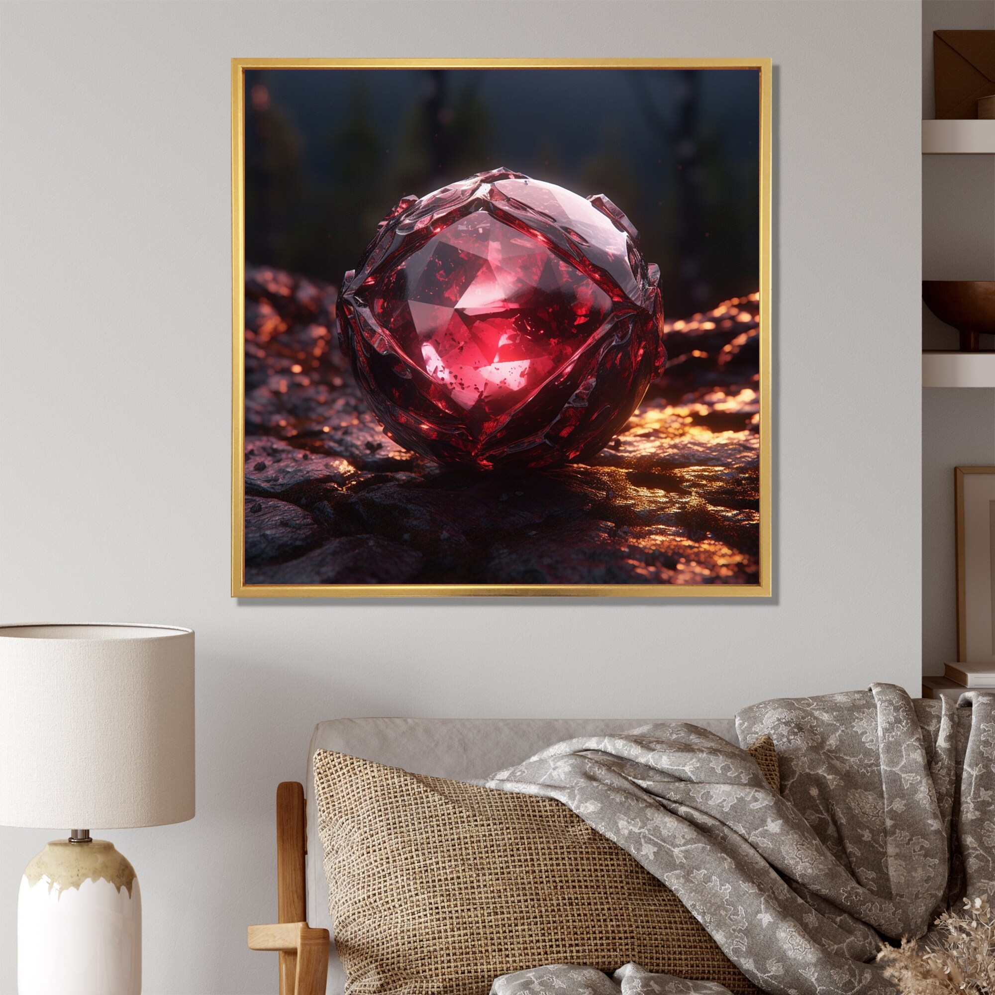 Designart "Red Gold Vibrant Stones" Stone Geode Framed Canvas Prints