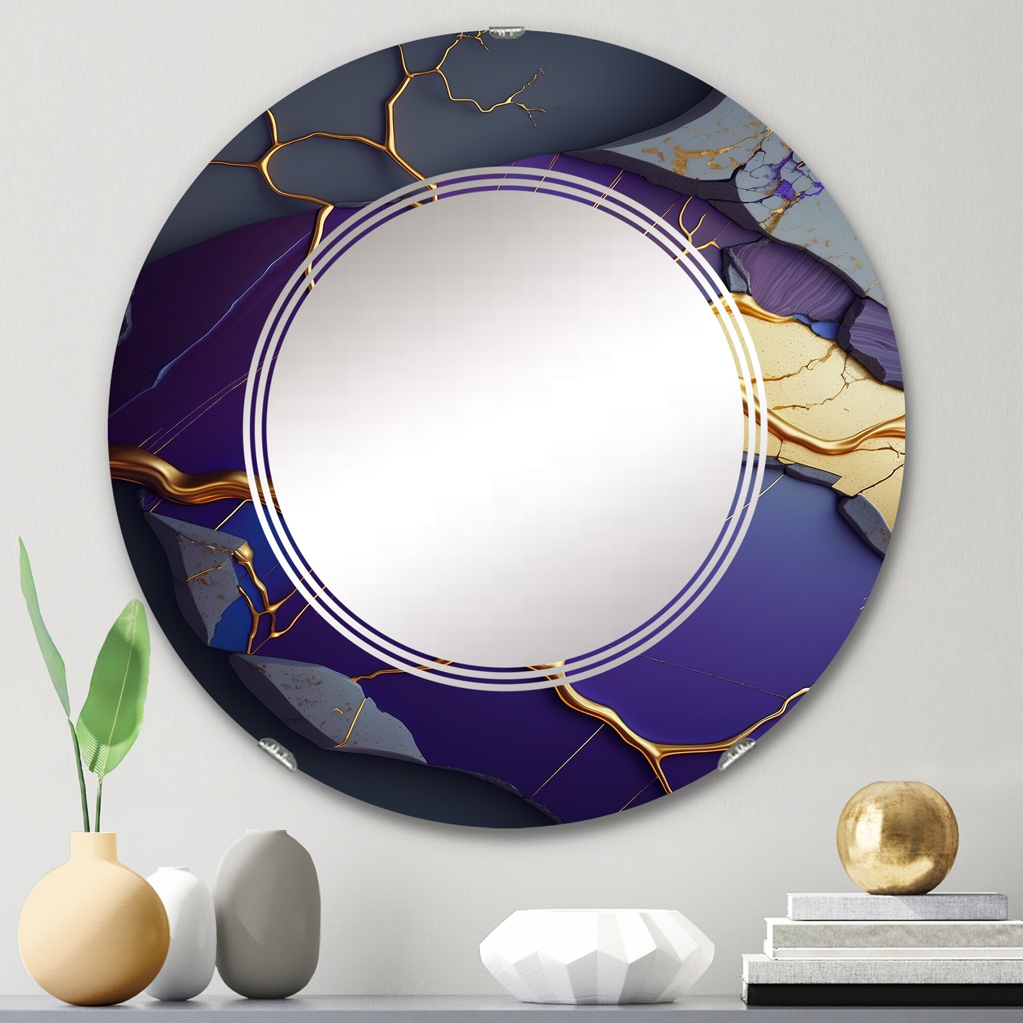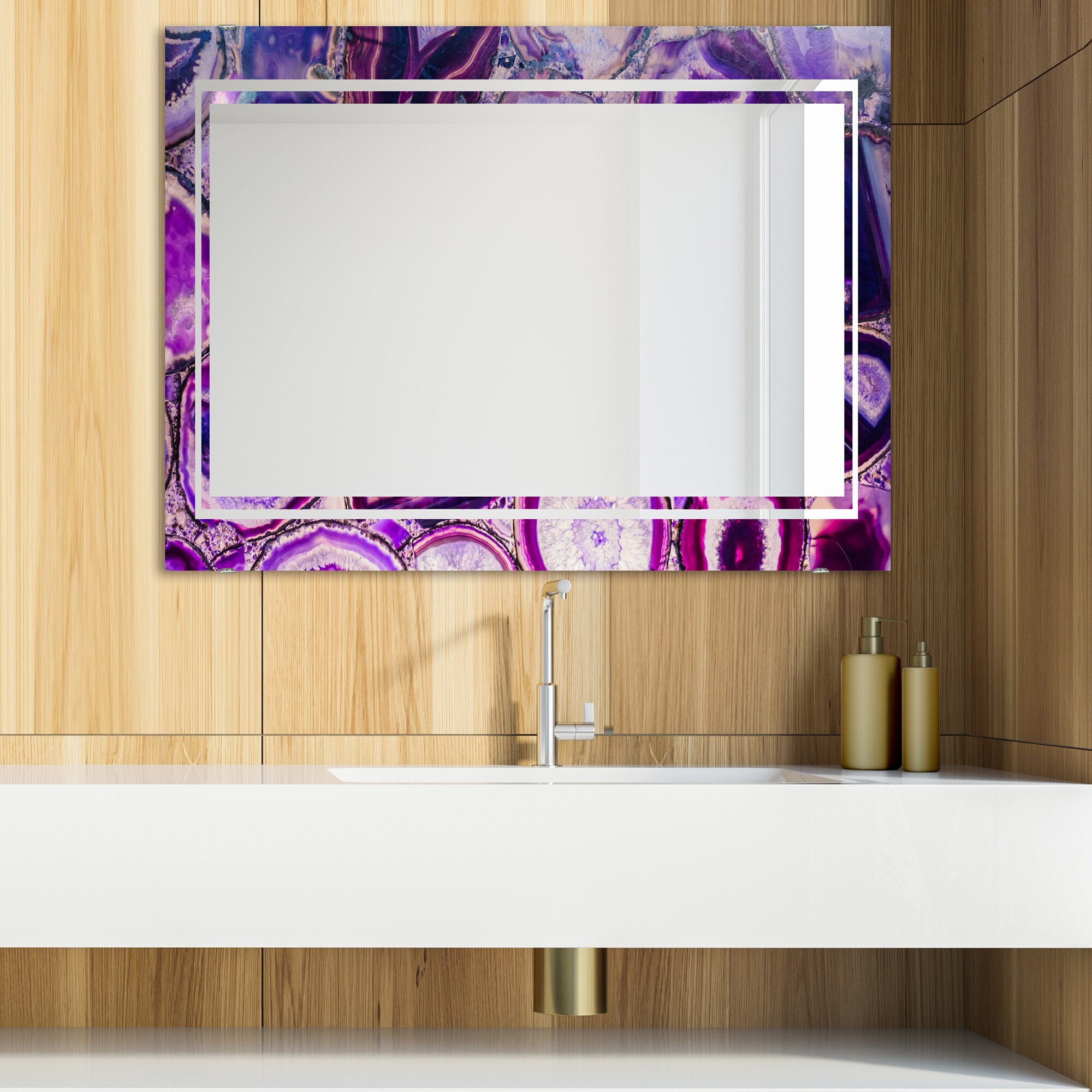 Designart 'Abstract Geode Purple I' Printed Abstract Marble Wall Mirror