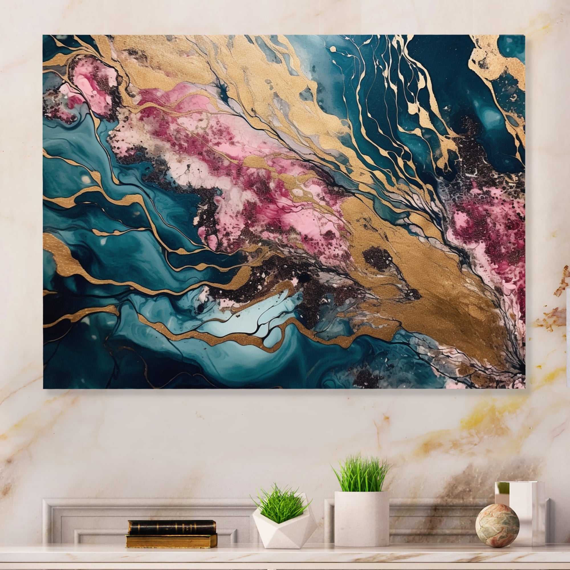 Designart "Exploring The Depths of Pink Gold Geode I" Abstract Marble Framed Wall Decor