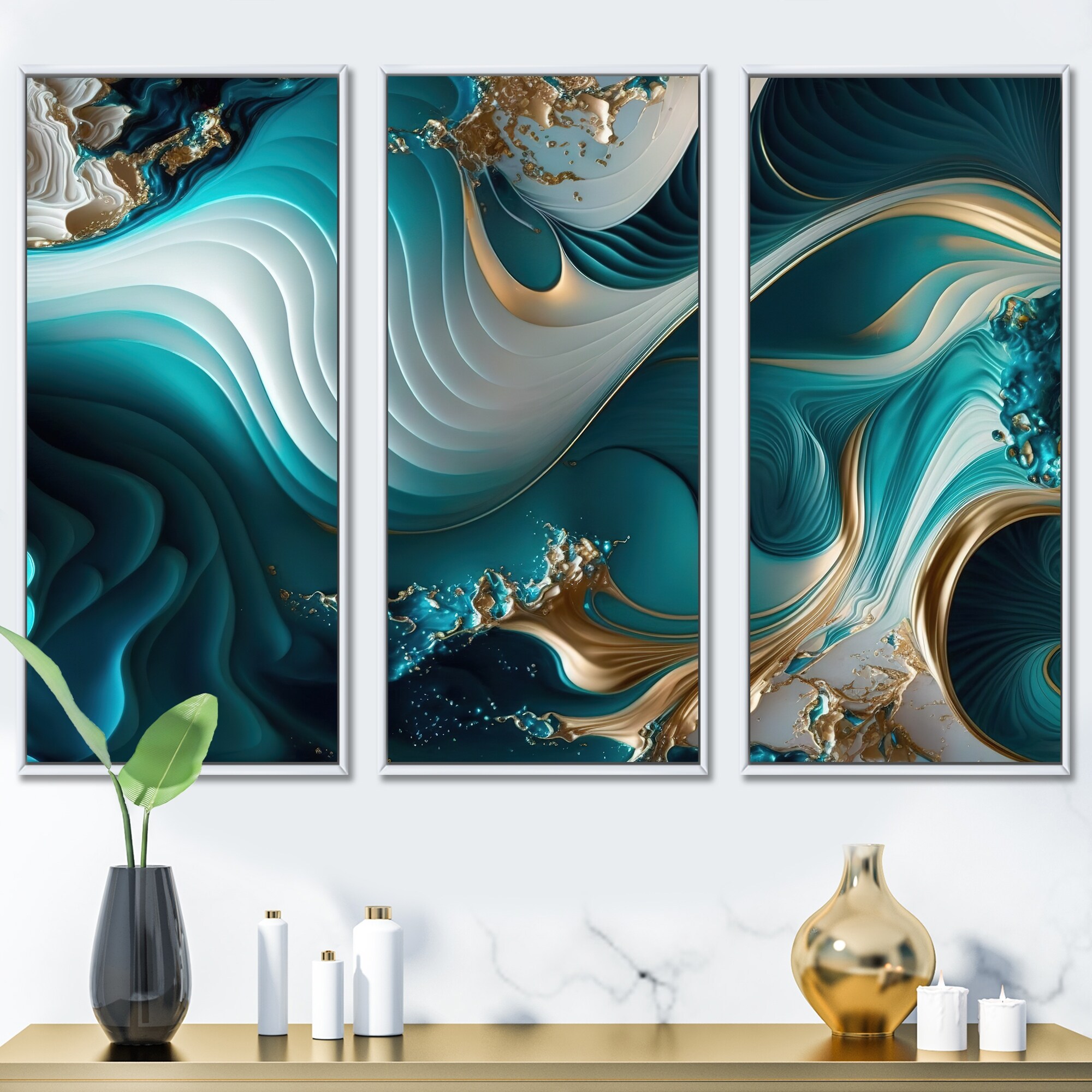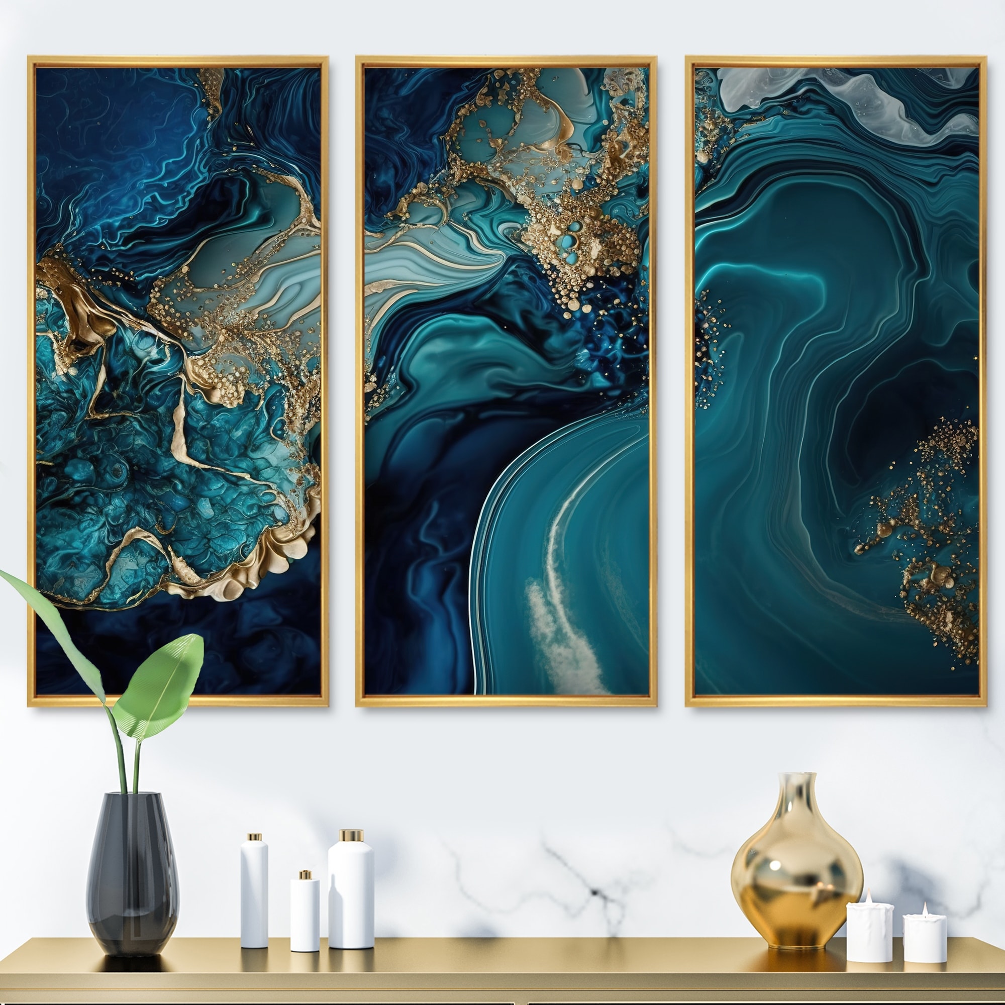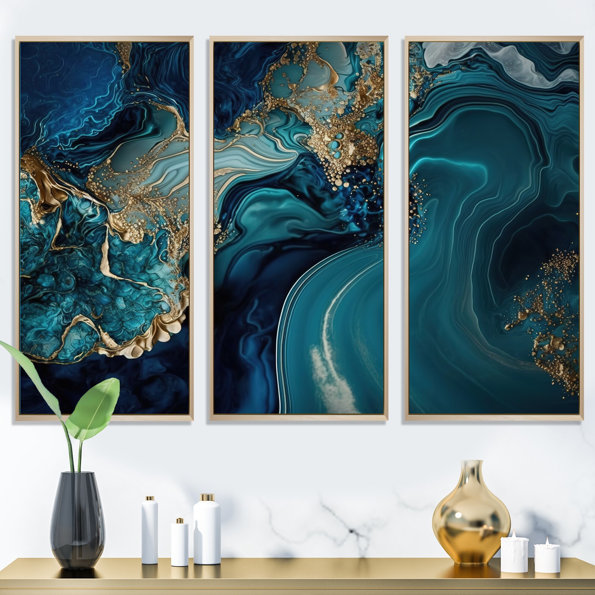 Designart "Abstract Geode Turquoise II" Abstract Marble Framed Canvas Art Print - 3 Panels