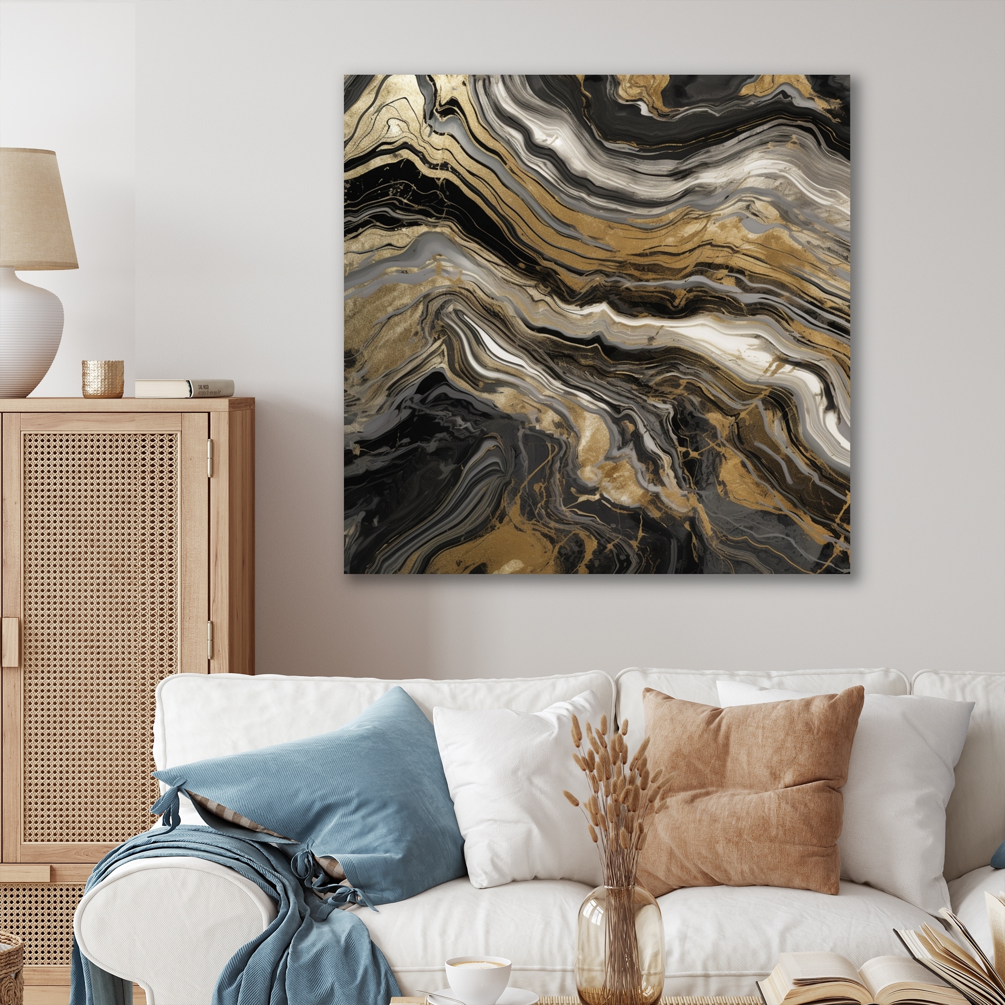 Designart "Exploring The Depths of Black Gold Geode III" Abstract Marble Metal Wall Art