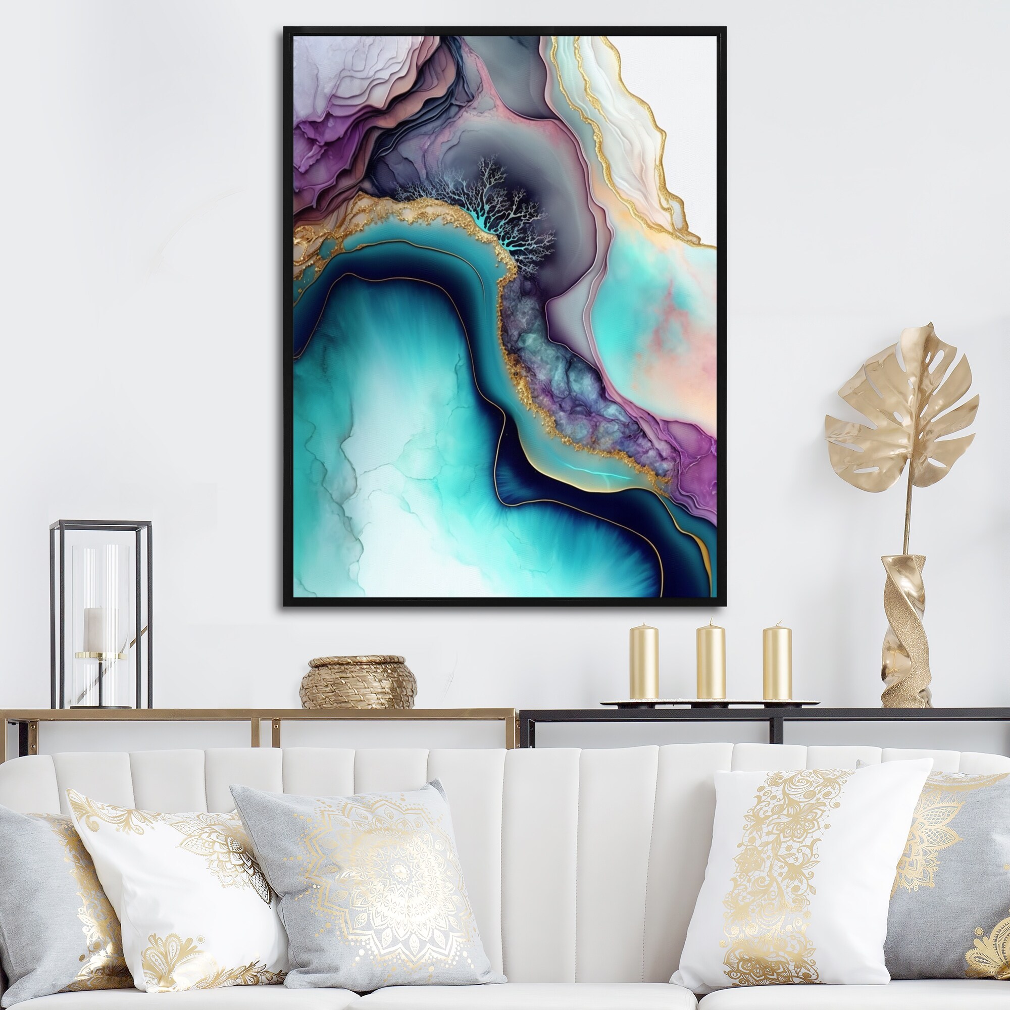 Designart "Blue Purple Abstract Geode I" Abstract Marble Framed Canvas Wall Art