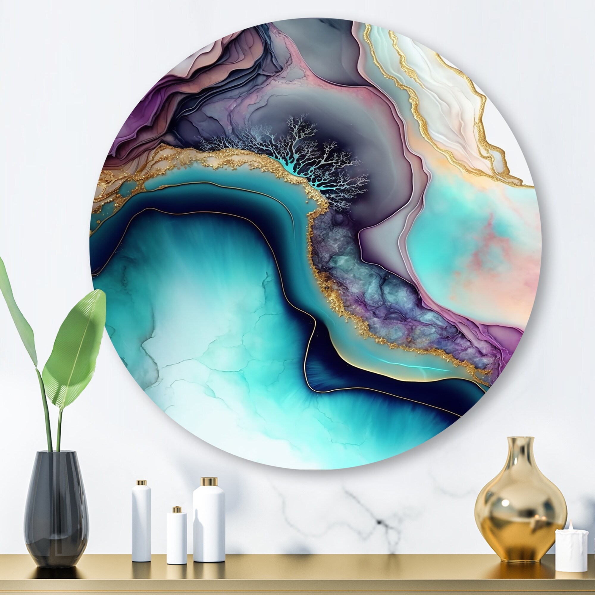 Designart "Blue Purple Abstract Geode III" Abstract Marble Metal Round Wall Art
