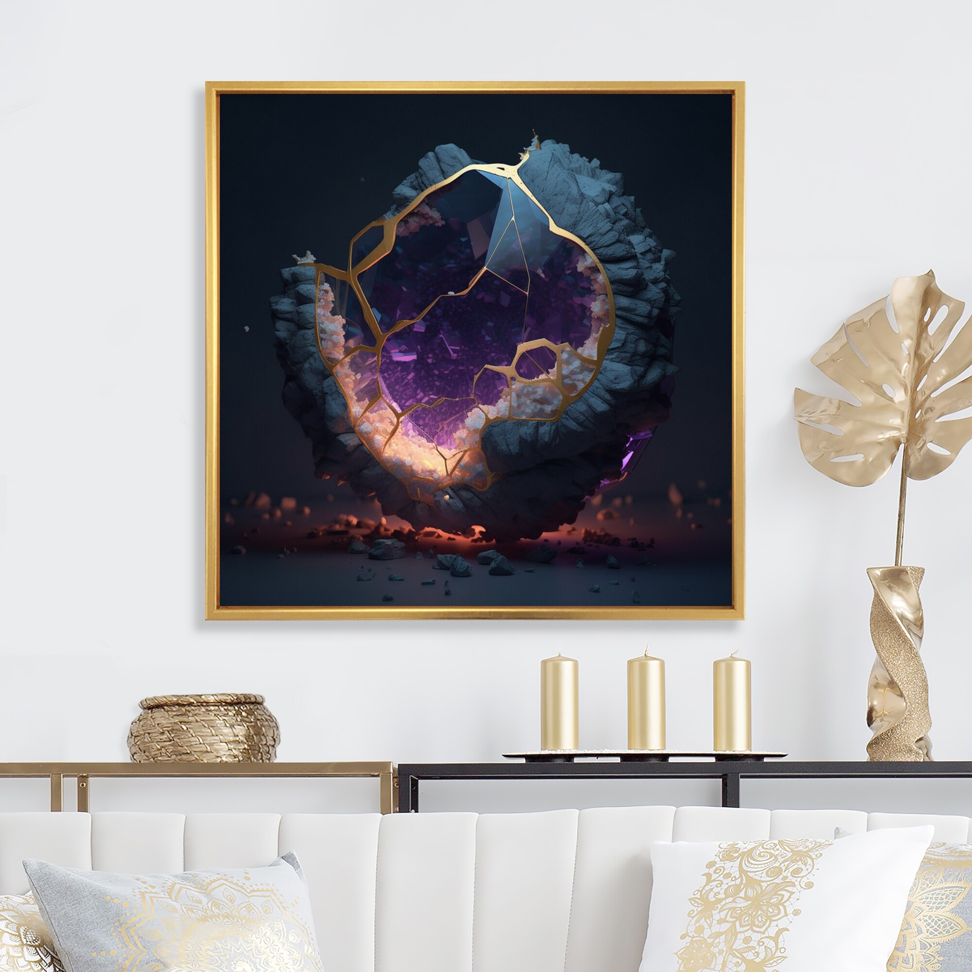 Designart "Abstract Geode Violet I" Marble Abstract Framed Canvas Art Print