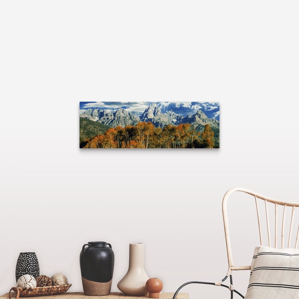 "Wyoming, Grand Teton National Park, Panoramic view of a mountain range" Canvas Wall Art