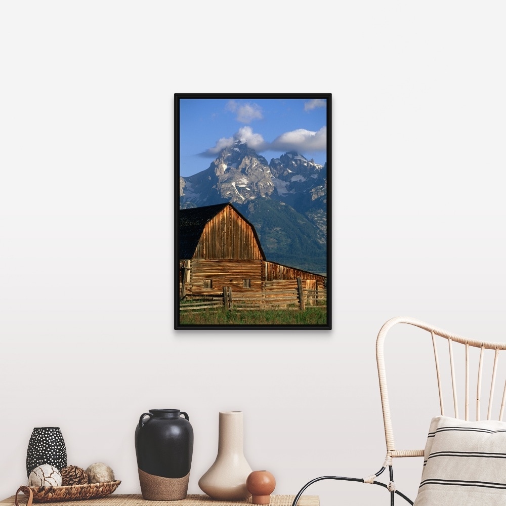 "Ninteenth century Mormon Row barn Homestead in Grand Teton National Park, Wyo" Black Float Frame Canvas Art