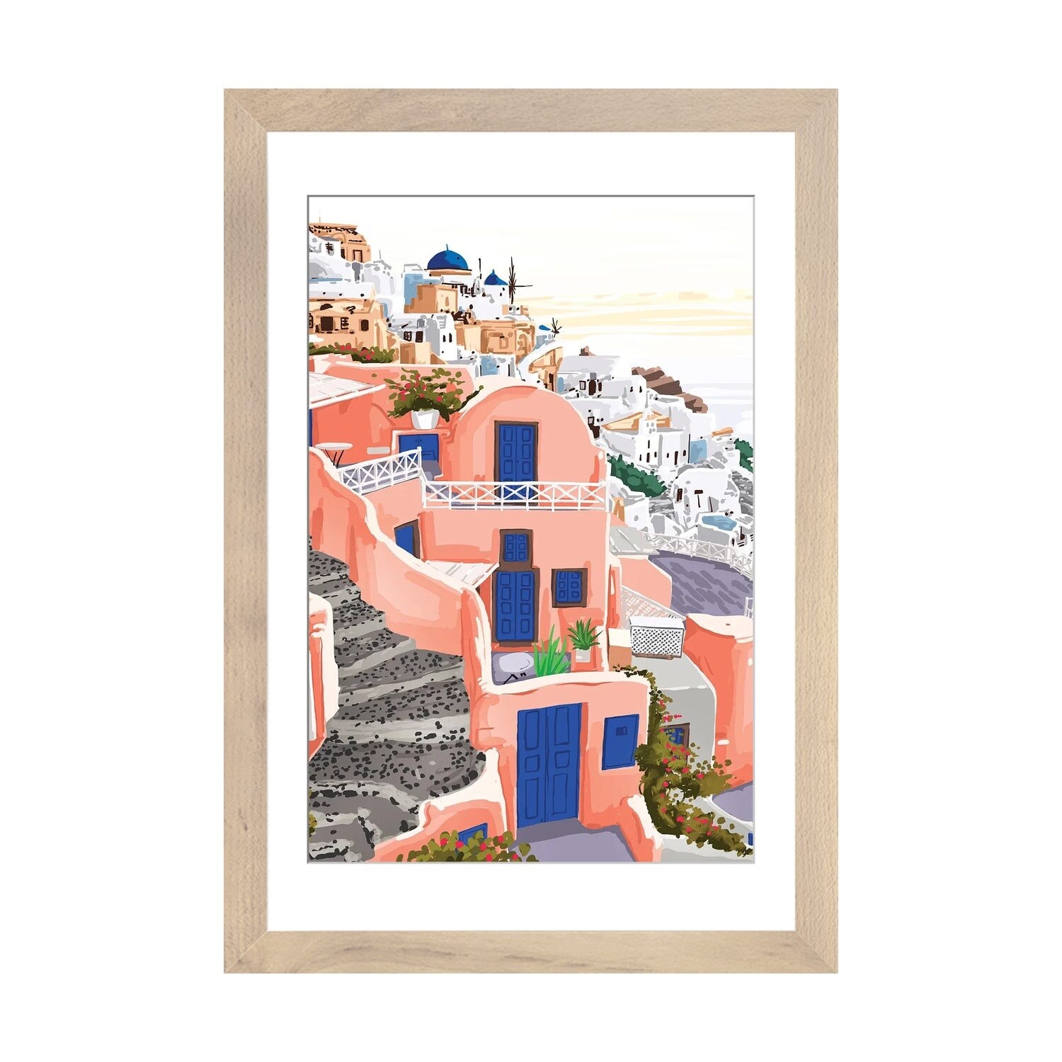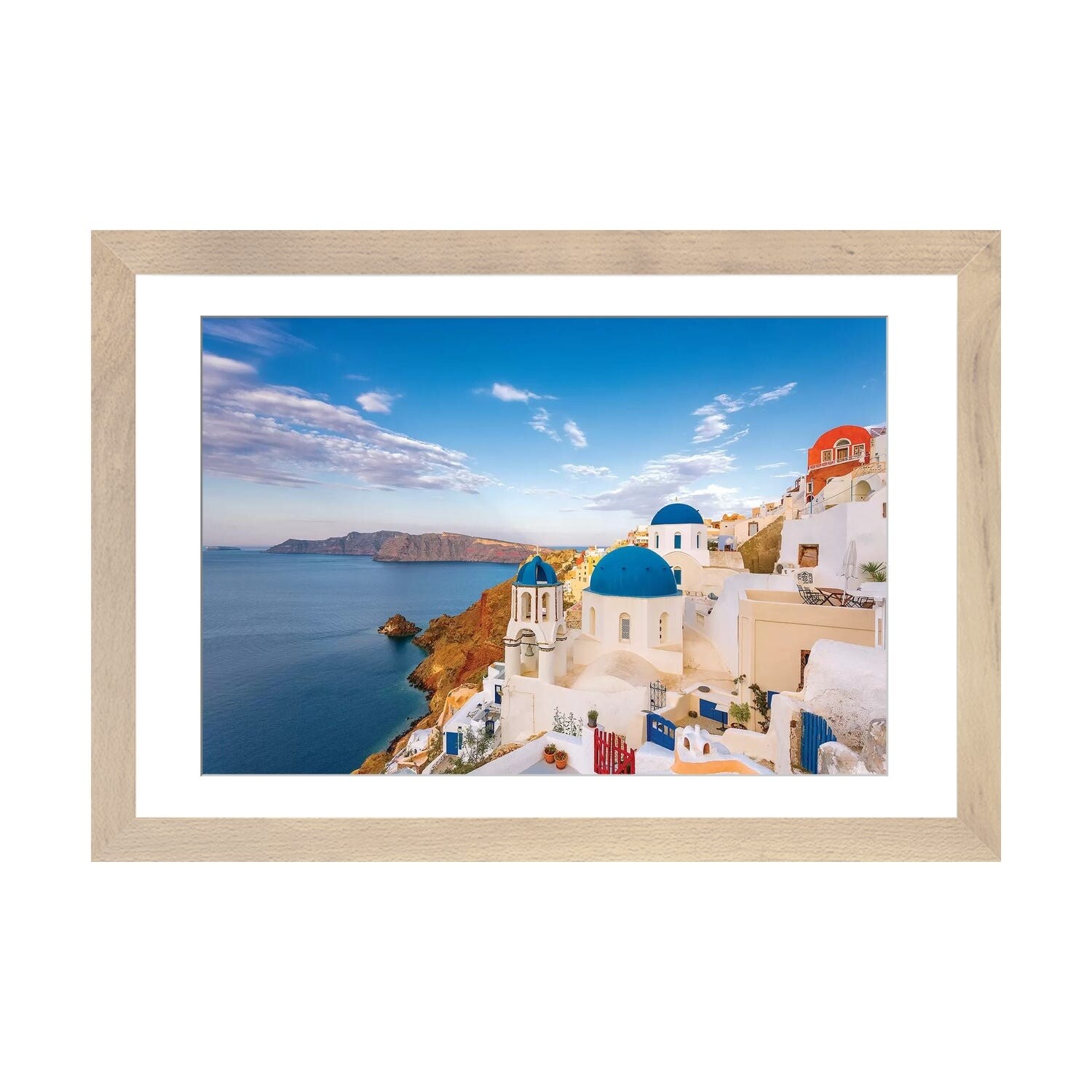 Designart "Greece Santorini Beautiful Cityscape I" Greece Framed Wall Art Prints
