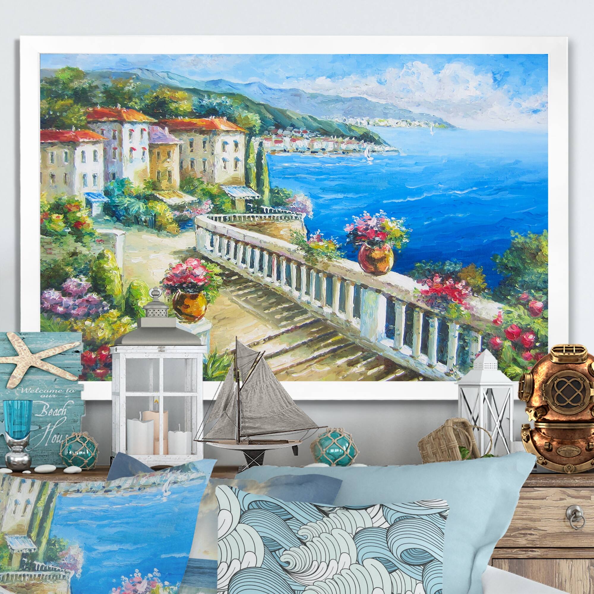 Designart "Beautiful Greece Coastal Landscape III" Nautical & Coastal Framed Art Print
