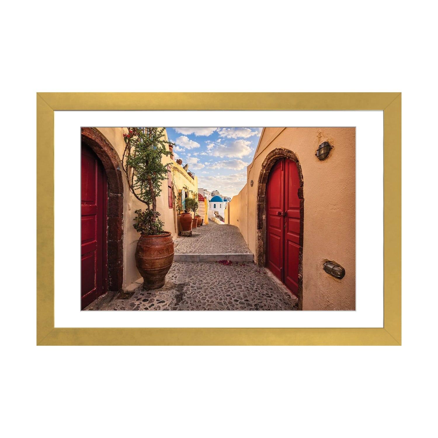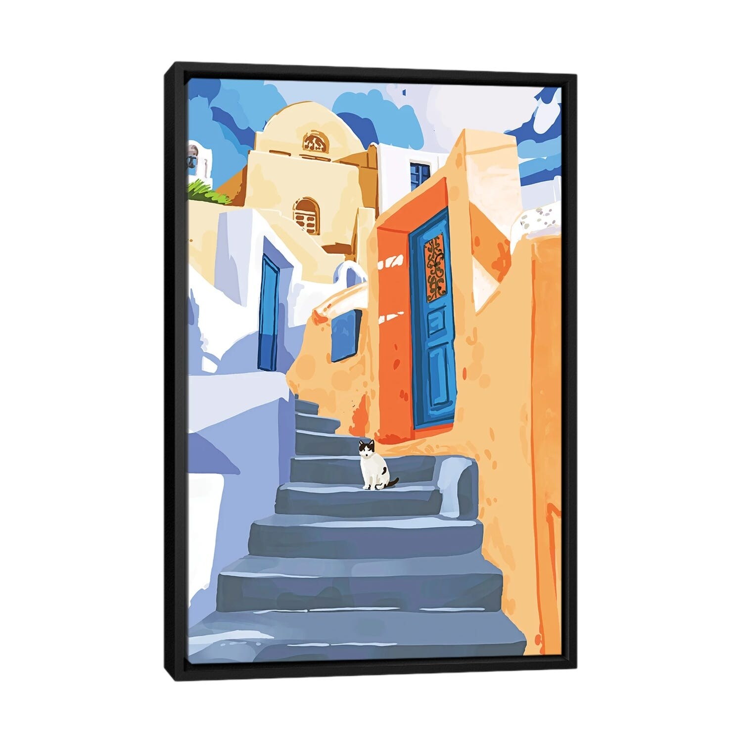 iCanvas "Greece, Architecture Tropical Exotic Travel Places City, Bohemian Beachy Santorini" by 83 Oranges Framed Canvas Print