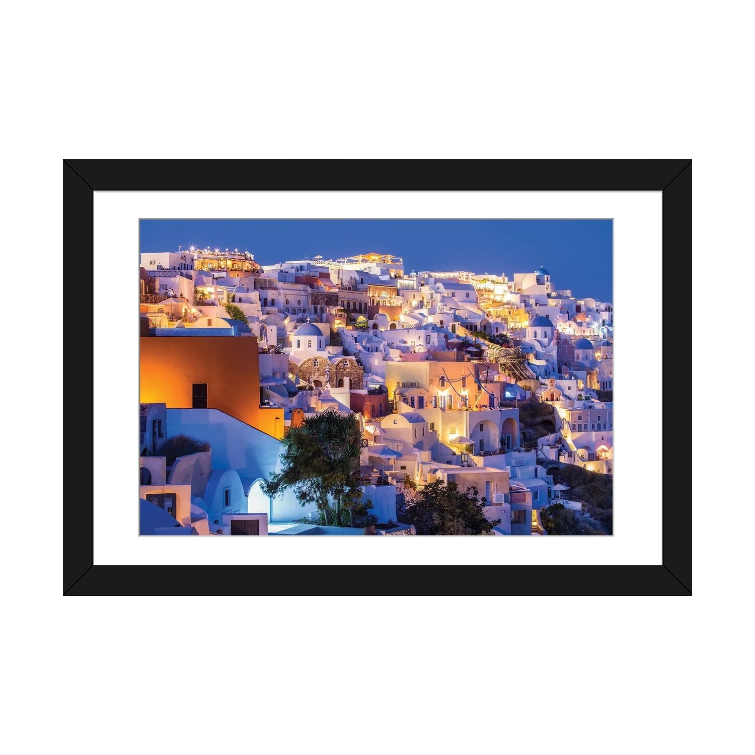 iCanvas "Greece, Santorini, Oia. Sunset on Coastal Town." by Jaynes Gallery Framed