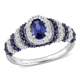 Miadora Sterling Silver Oval Created Blue and White Sapphire Halo Layered Cocktail Ring