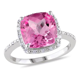 Miadora Sterling Silver Cushion-cut Created Pink Sapphire and 1/10ct TDW Diamond Cocktail Halo Ring