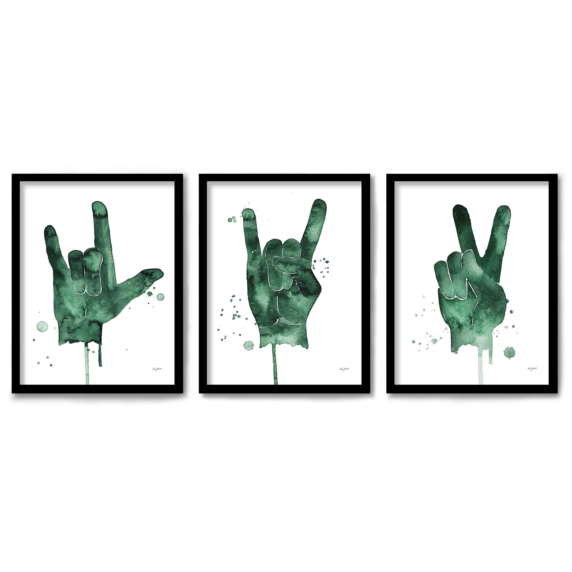 Painted Hand Signs By Kelsey Mcnatt 3 Piece Framed Print Wall Art Set