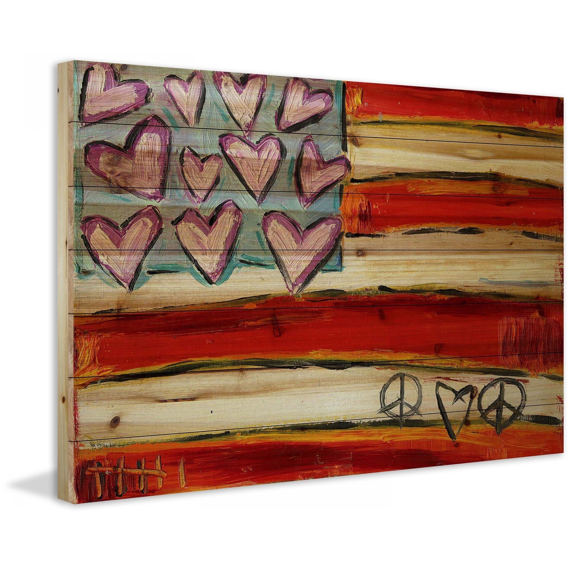 Marmont Hill - Handmade Heart Flag Painting Print on Natural Pine Wood