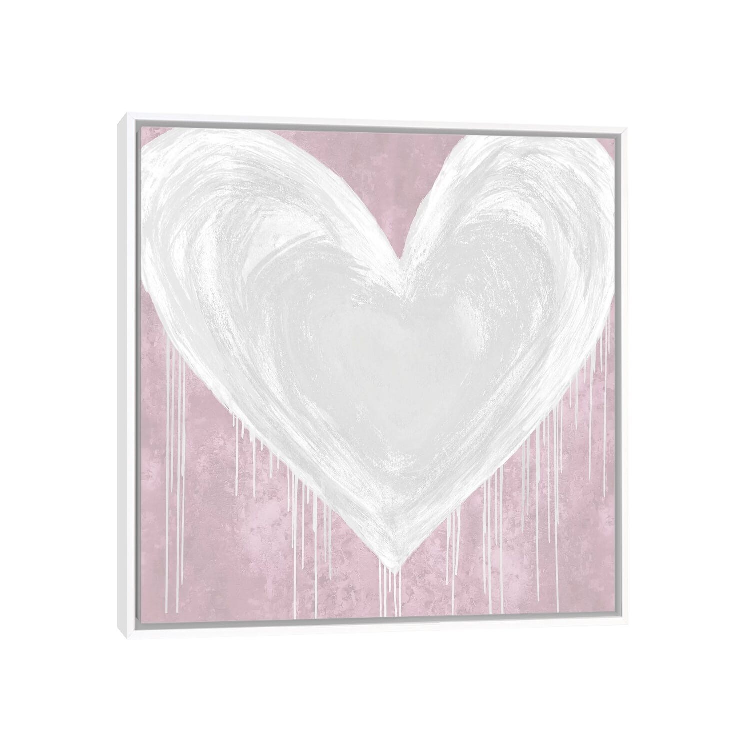 iCanvas "Big Hearted White on Pink" by Lindsay Rodgers Framed Canvas Print