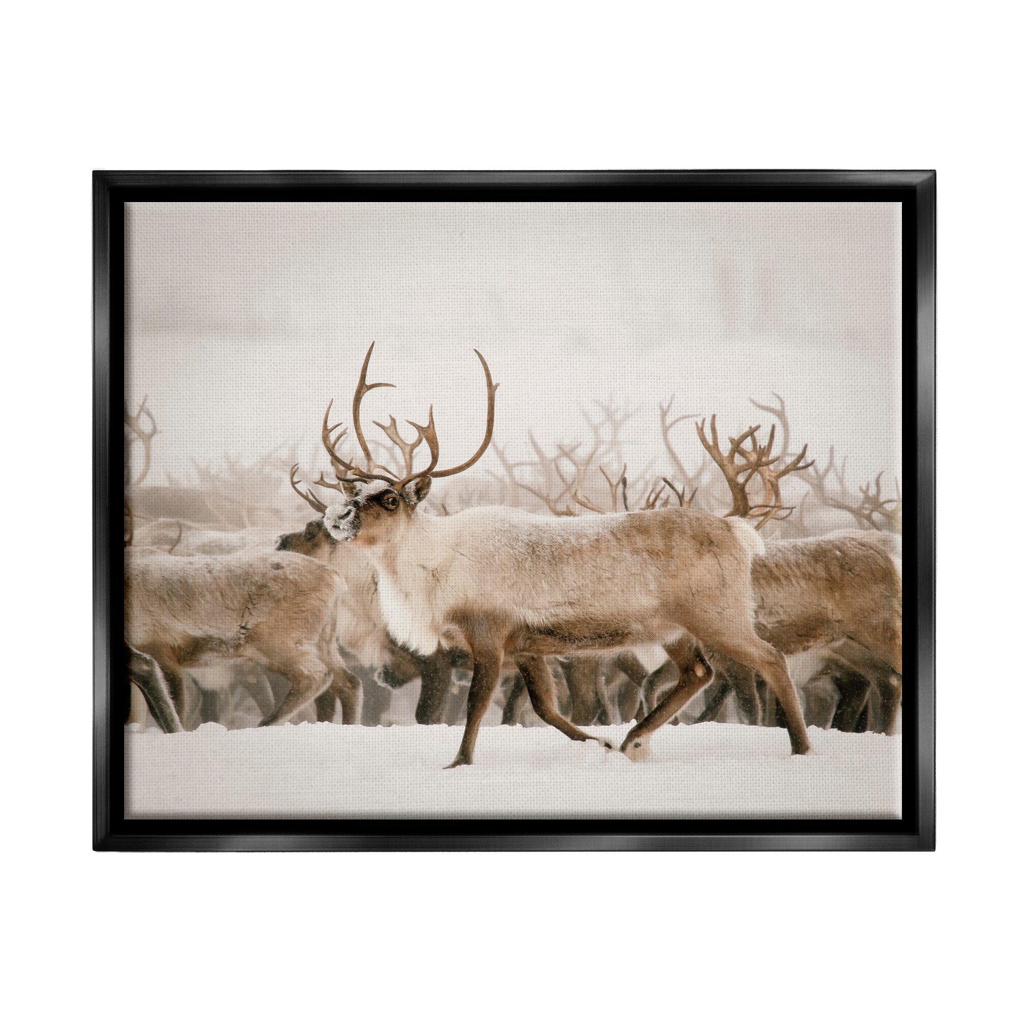 Stupell Industries Elk Herd Snowy Winter Scene Framed Floater Canvas Wall Art by Krista Broadway