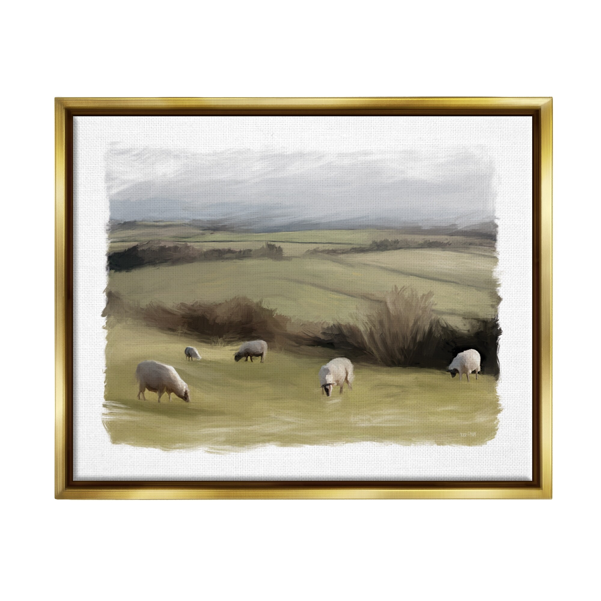 Stupell Industries Grazing Sheep Herd Rural Fields Framed Floater Canvas Wall Art by House Fenway