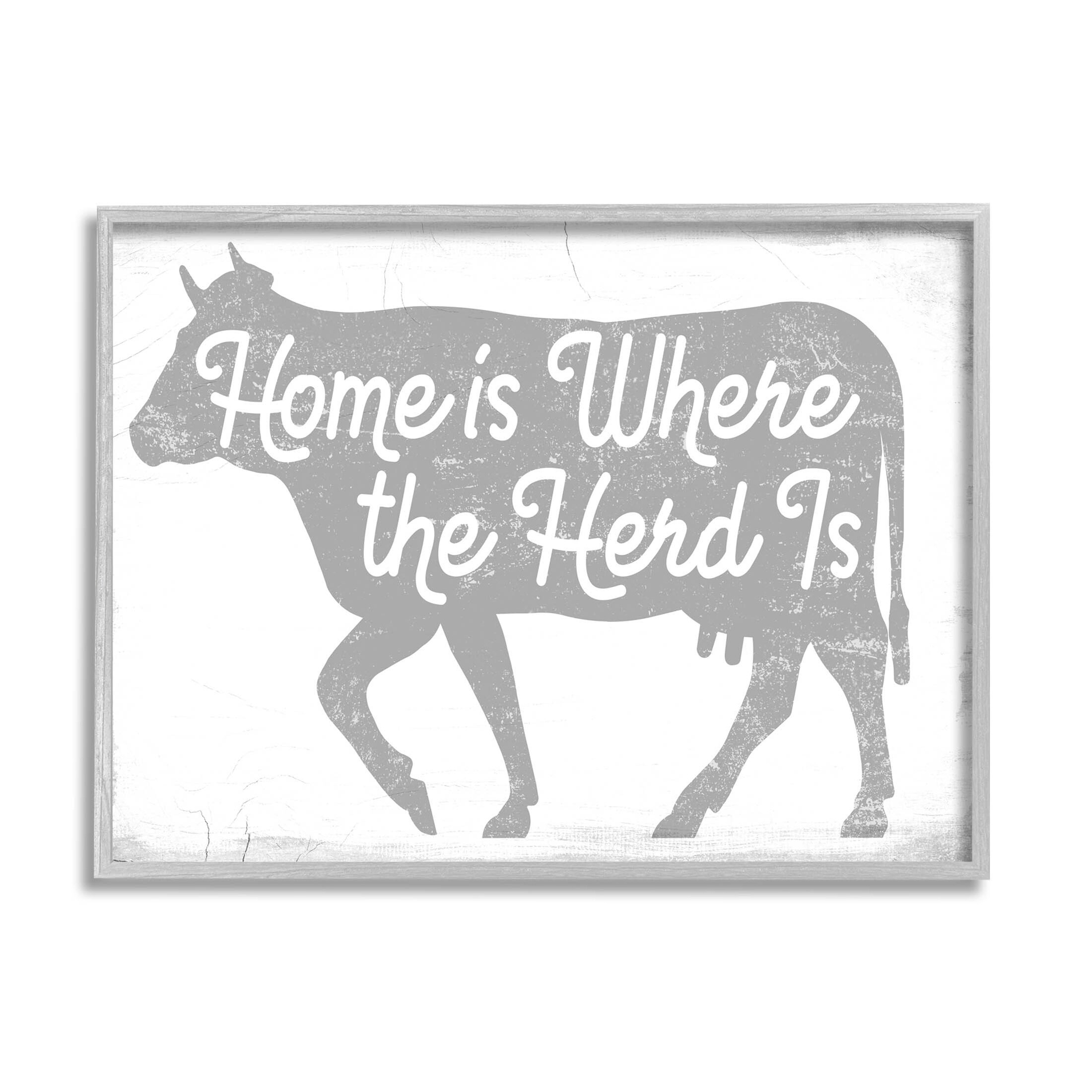 Stupell Industries Home is Where the Herd Is Farm Cow Pun Framed Wall Art - Grey