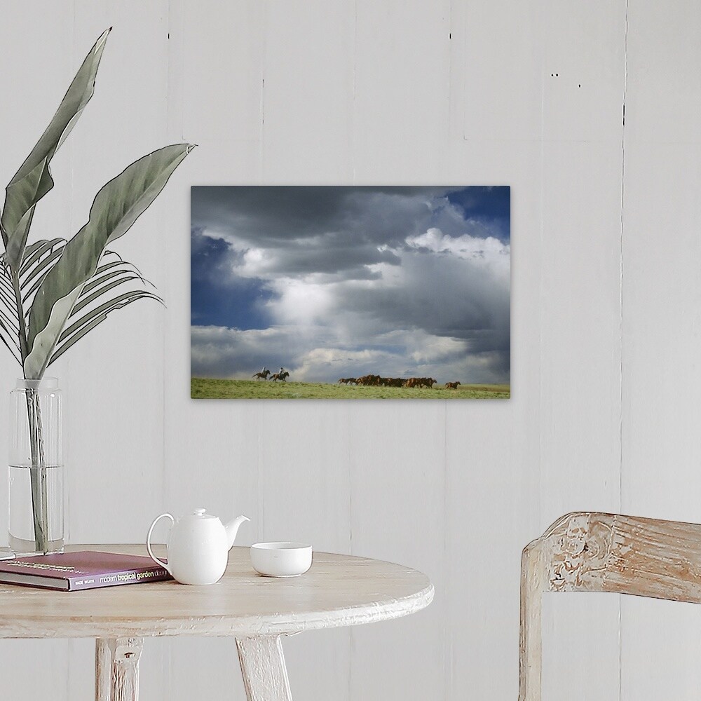 "Cowboys moving herd of horses" Canvas Wall Art