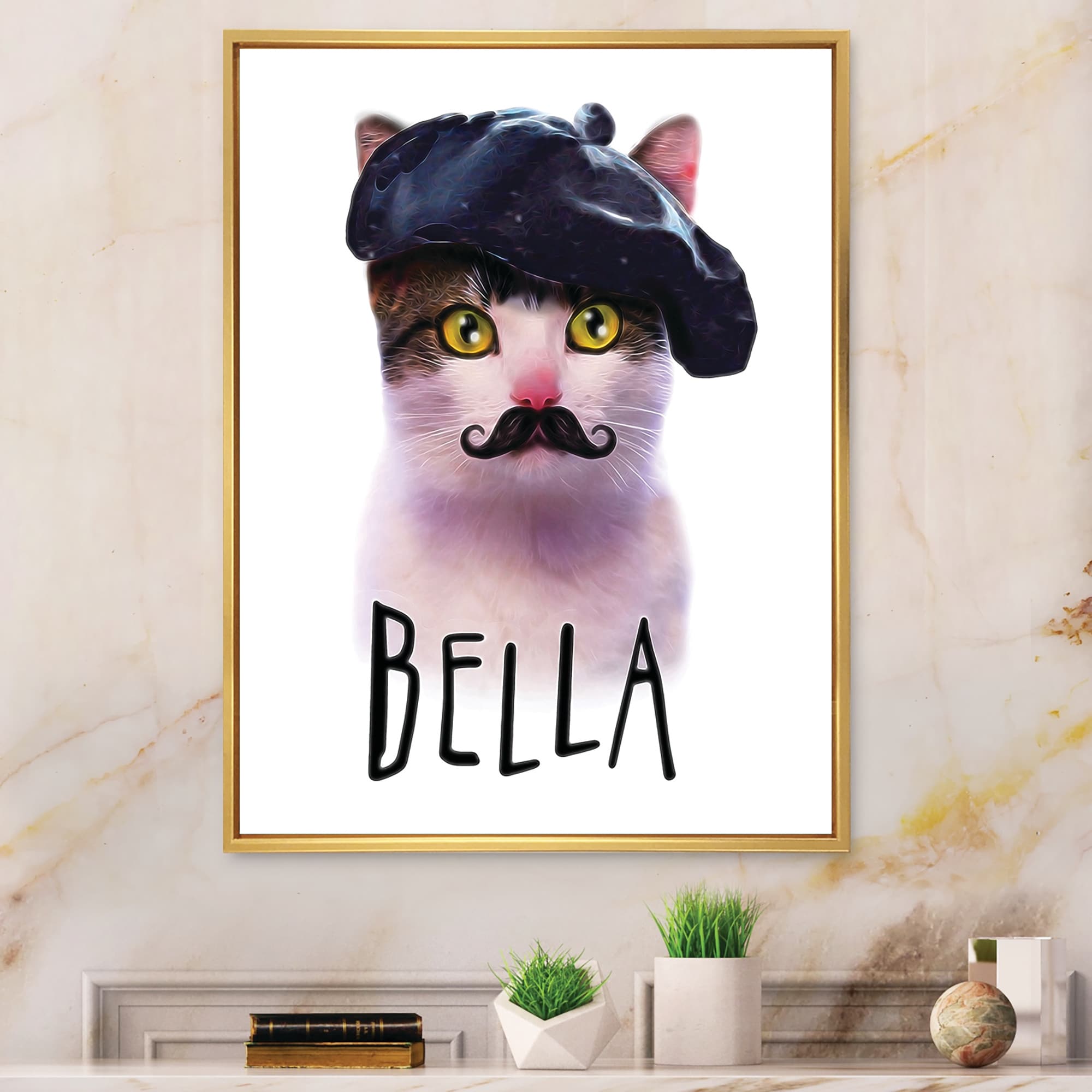 Designart "Hipster Funny Cat With Moustache" Children's Art Framed Canvas Art Print