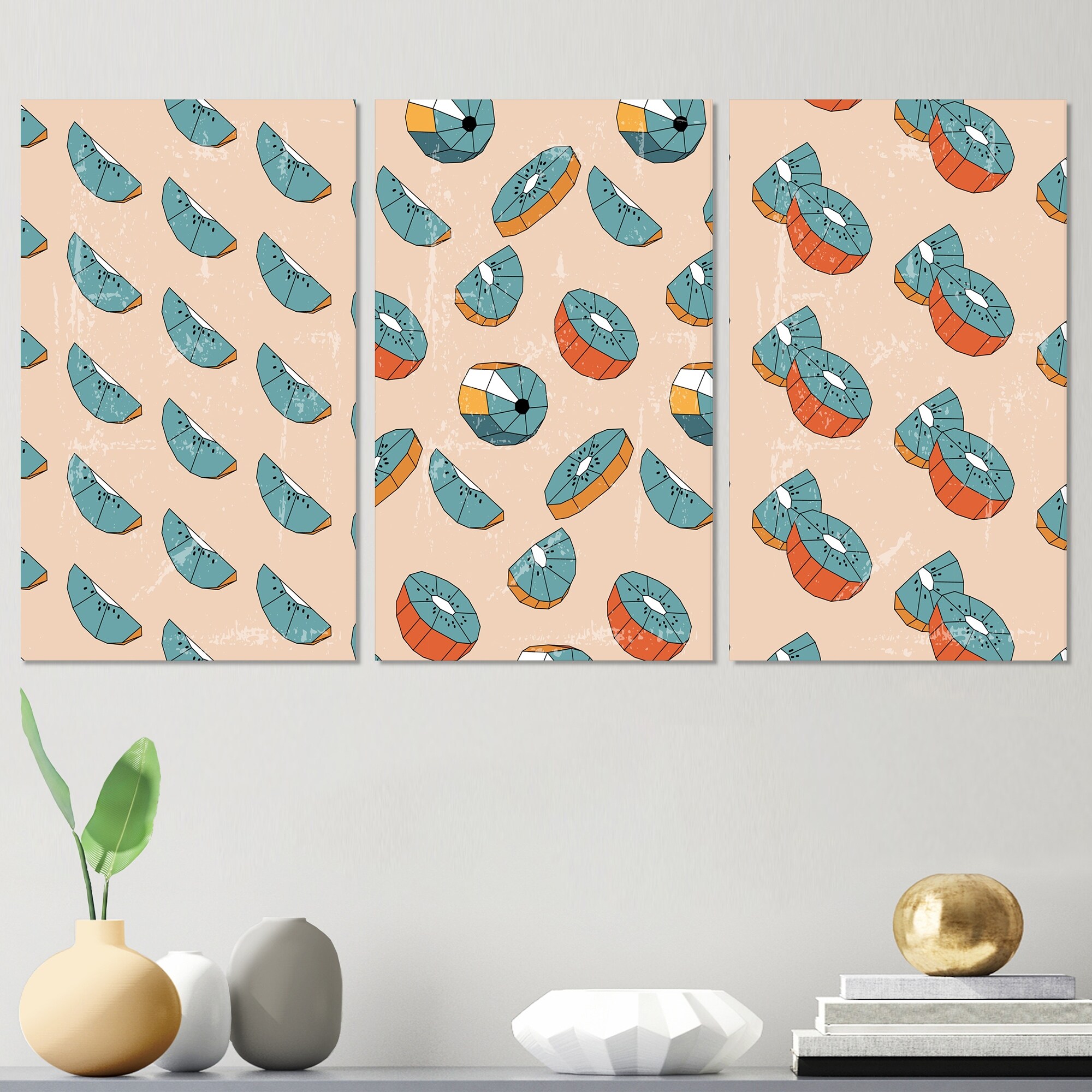 Designart 'Organic Vintage Hipster Fruits IV' Mid-Century Modern Art Set of 3 Pieces