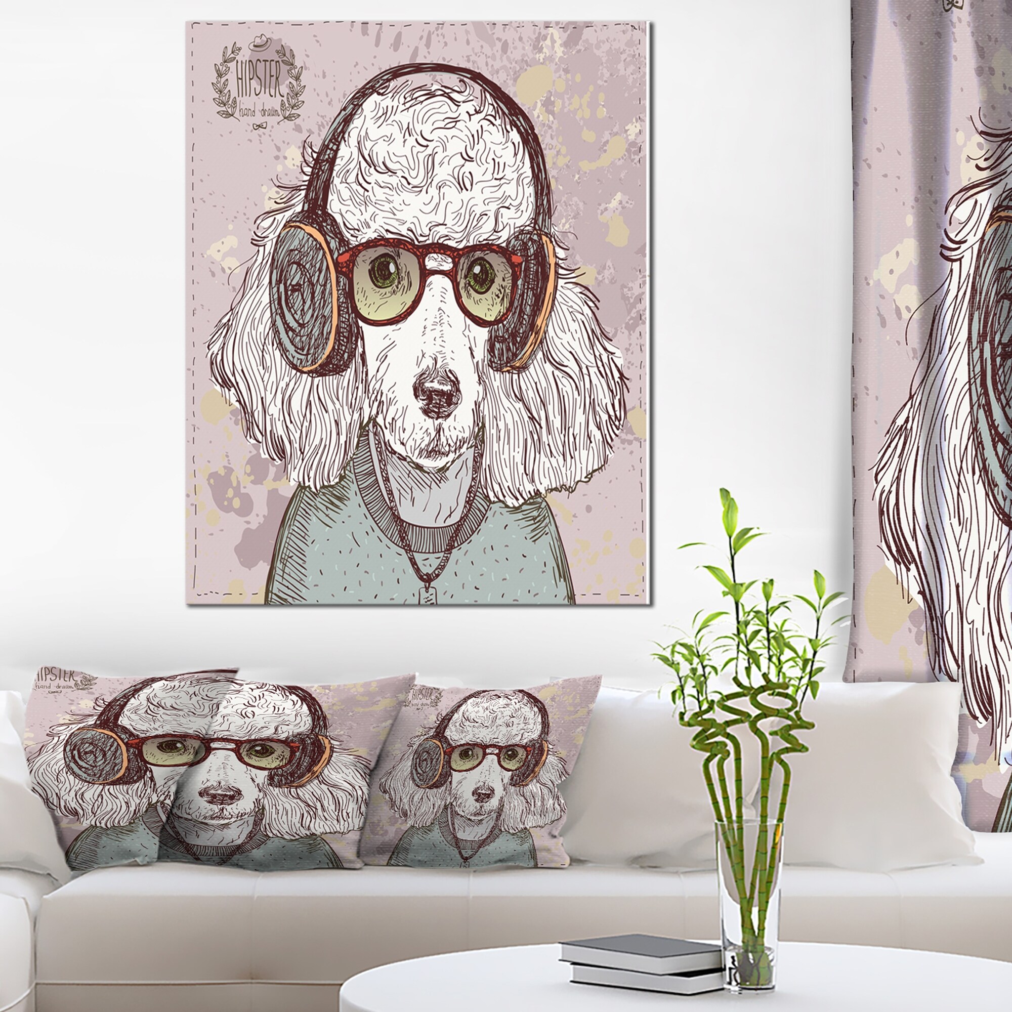 Designart "Funny Hipster Poodle with Glasses" Contemporary Animal Art Canvas