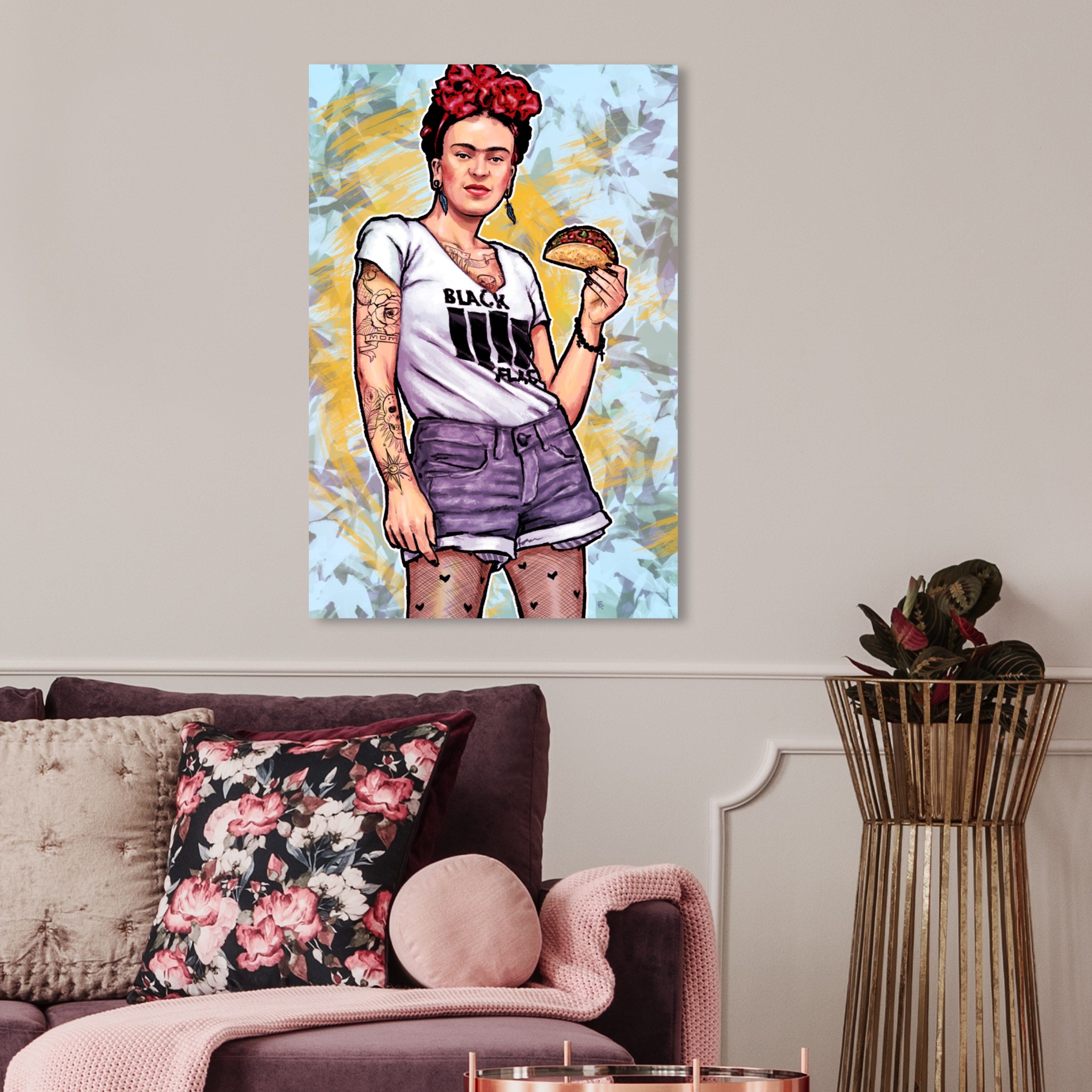 Wynwood Studio 'Hipster Frida' People and Portraits Wall Art Canvas Print Celebrities - Yellow, Purple