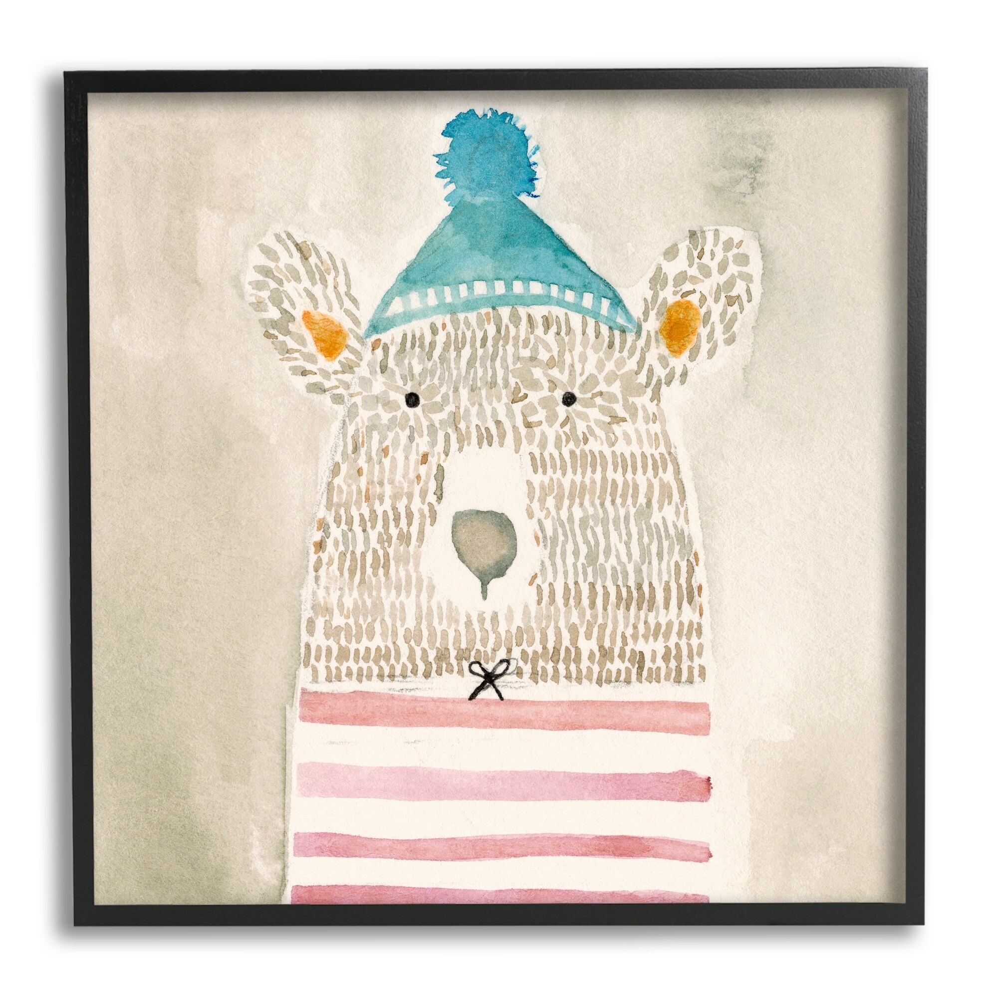 Stupell Industries Hipster Bear with Striped Shirt Blue Beanie Framed Wall Art - Brown