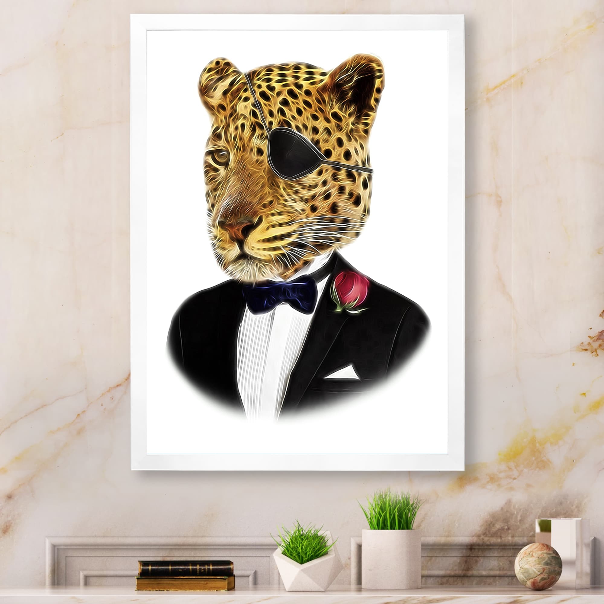 Designart "Hipster Stylish Leopard Head" Children's Art Framed Wall Decor