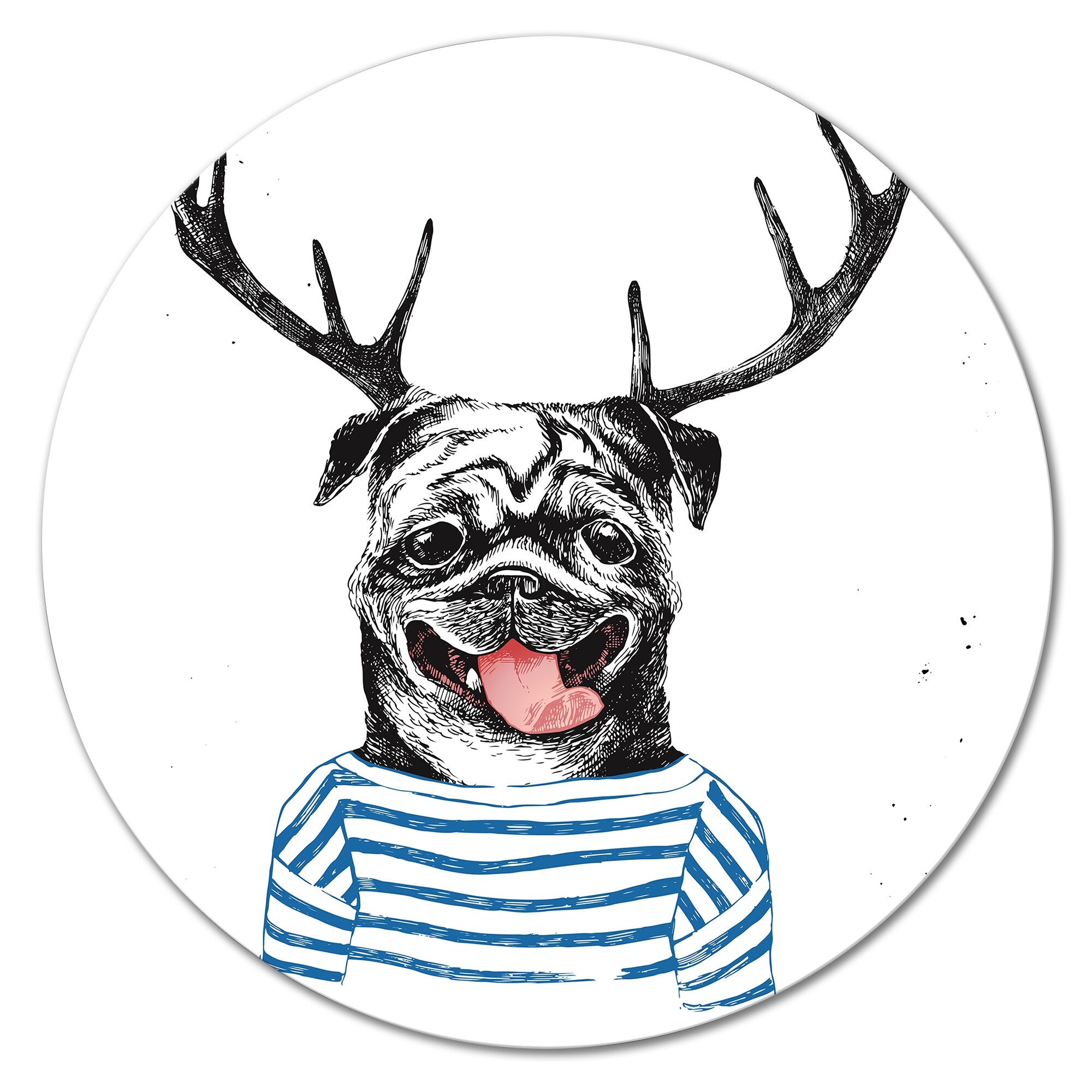 Designart 'Dressed Up Pug in Hipster Style' Traditional Metal Circle Wall Art