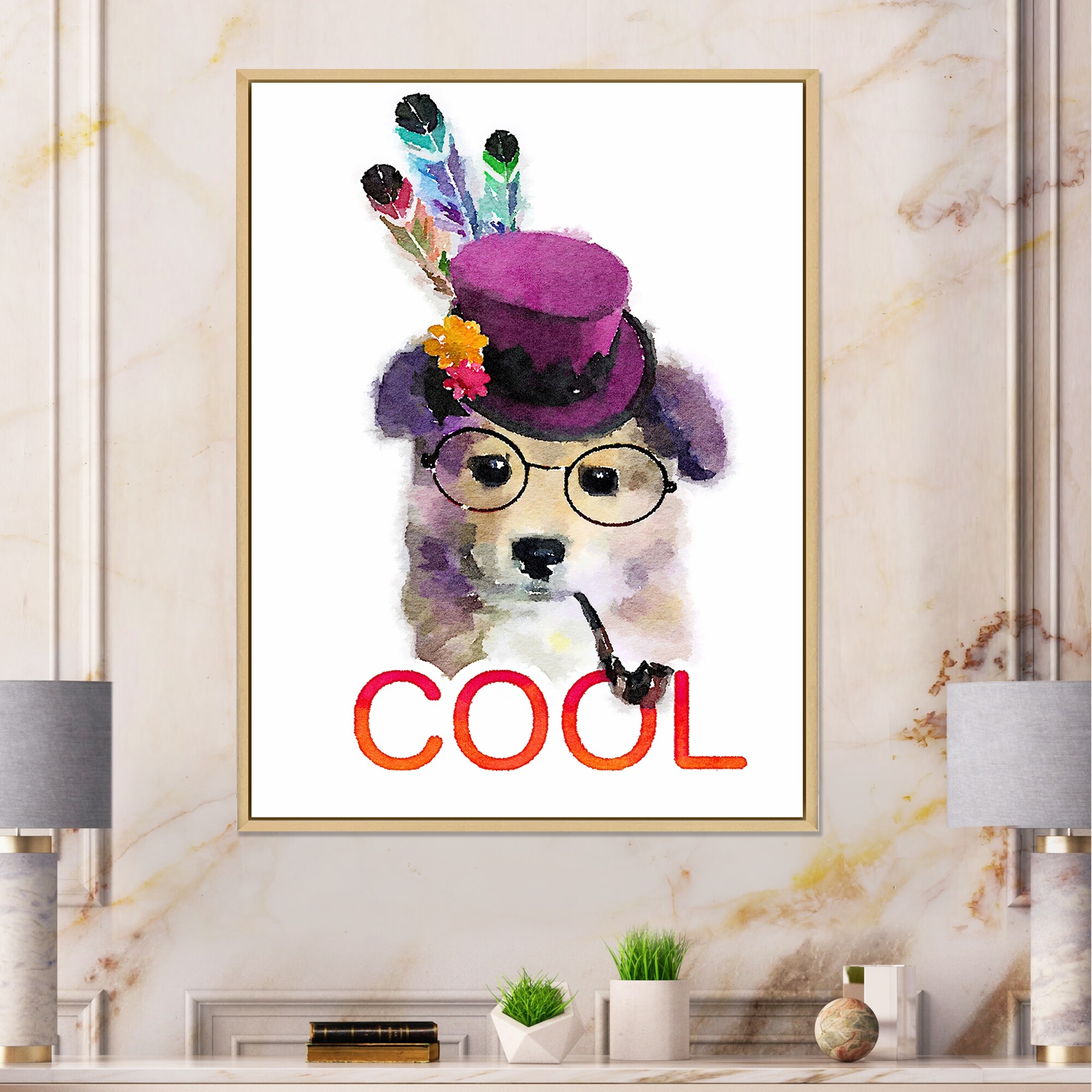 Designart "Hipster Golden Retriever Dog" Children's Art Framed Canvas Wall Art