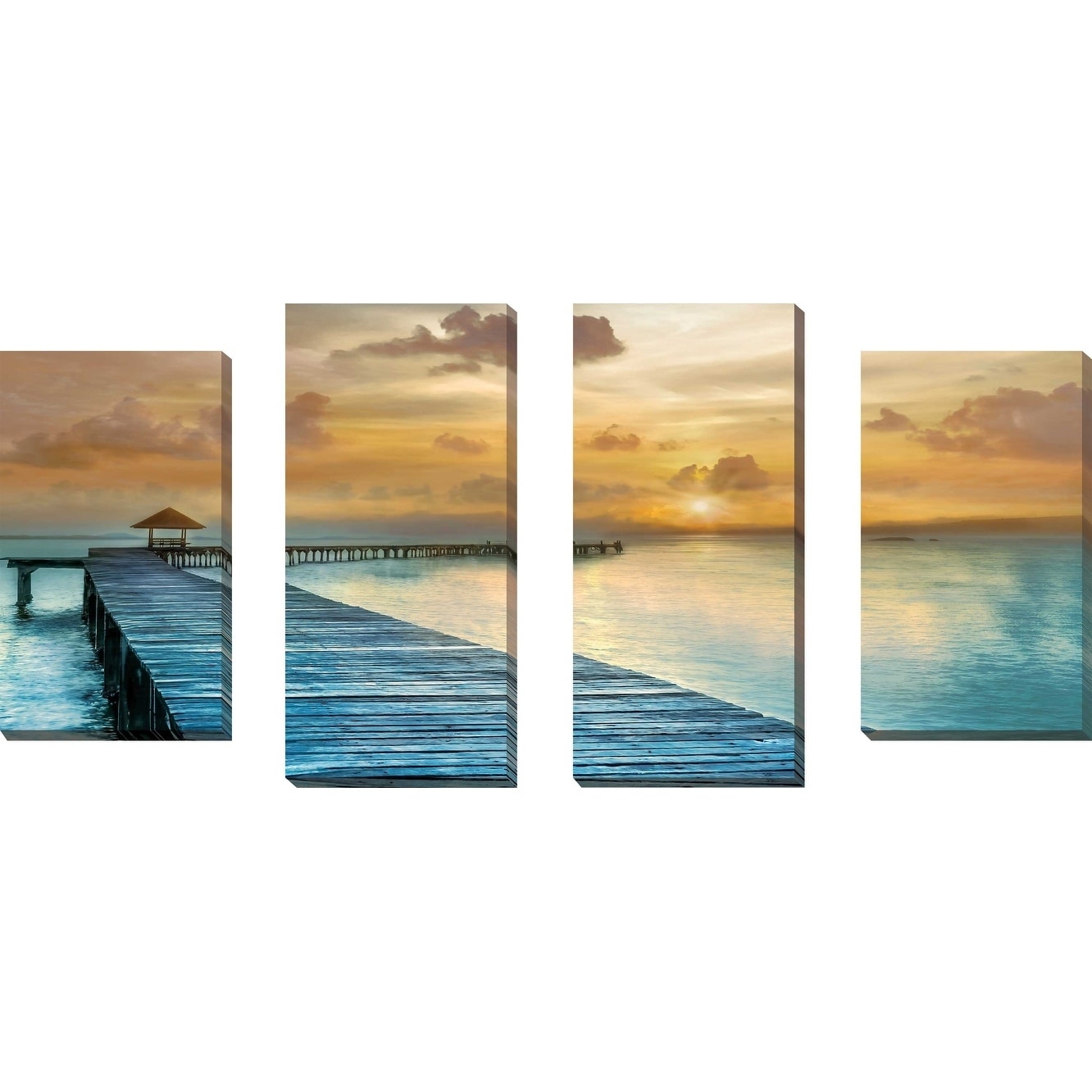 "Island Time" by Mike Calascibetta Print on Canvas Set of 4 - Blue