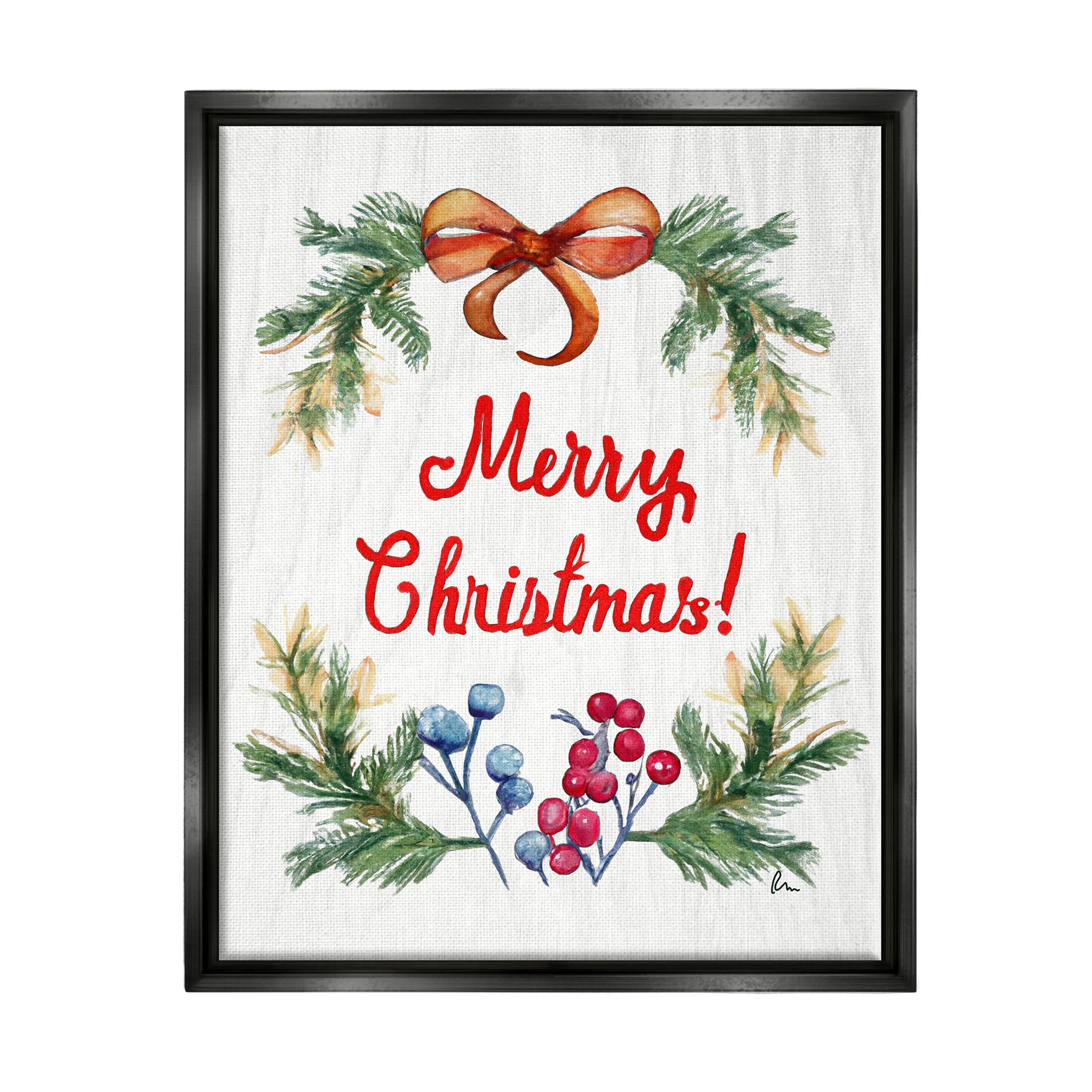 Stupell Industries Merry Christmas Holiday Holly Berry Floater Canvas Wall Art by Ramona Murdock