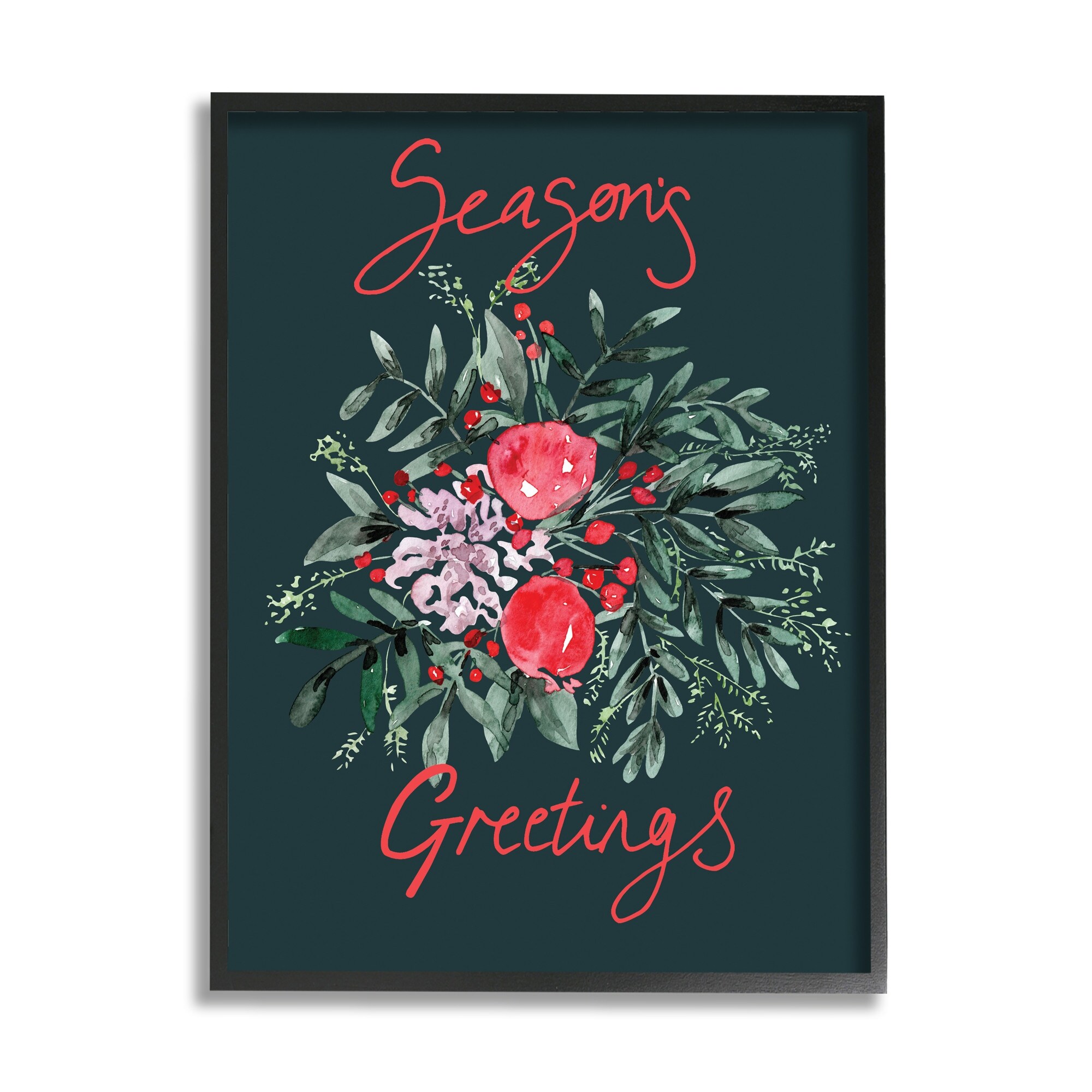 Stupell Festive Winter Holly Wreath Season's Greetings Sentiment Framed Wall Art - Green