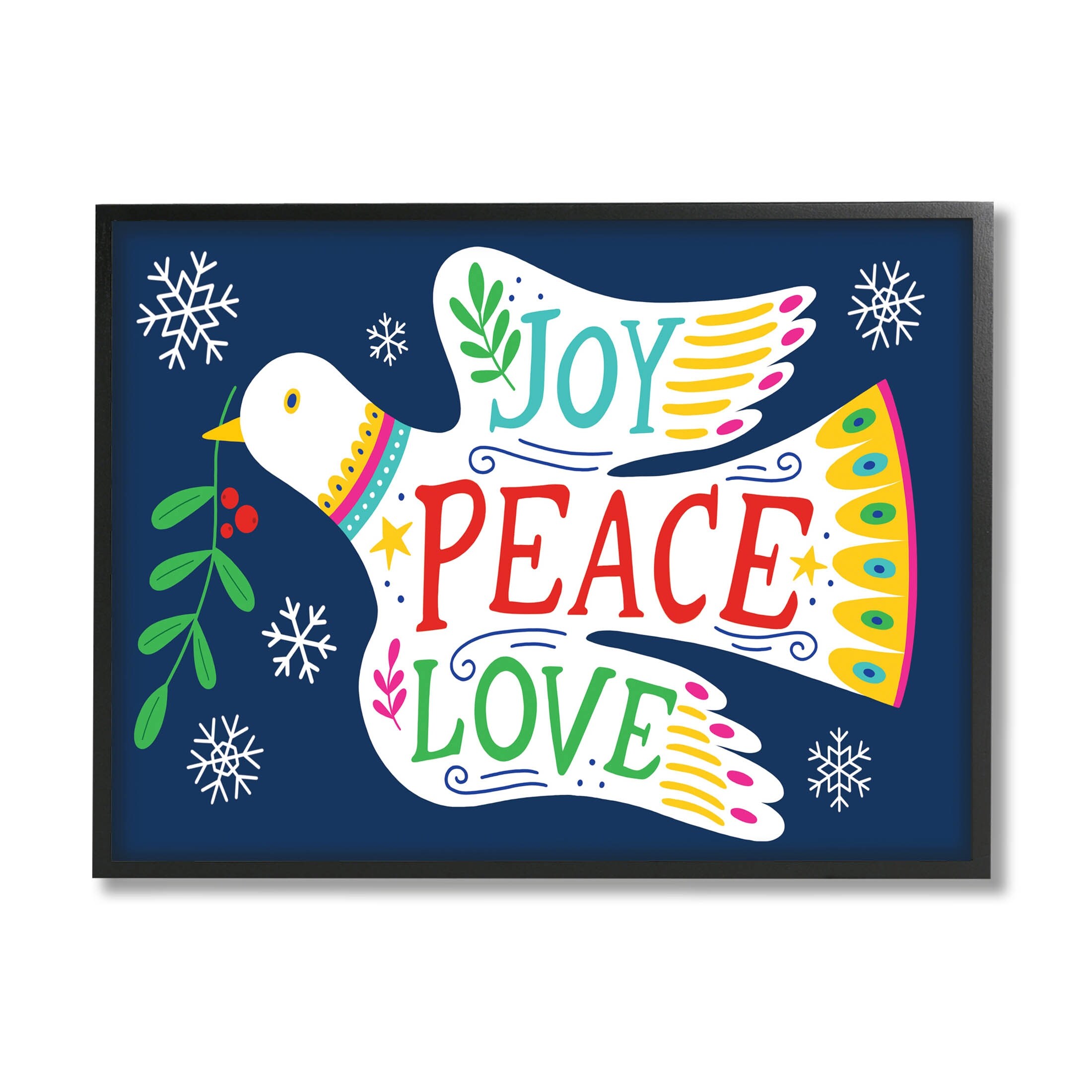 Stupell Industries Joy Peace Love Dove Holly Sprig Framed Giclee Art by Nina Seven