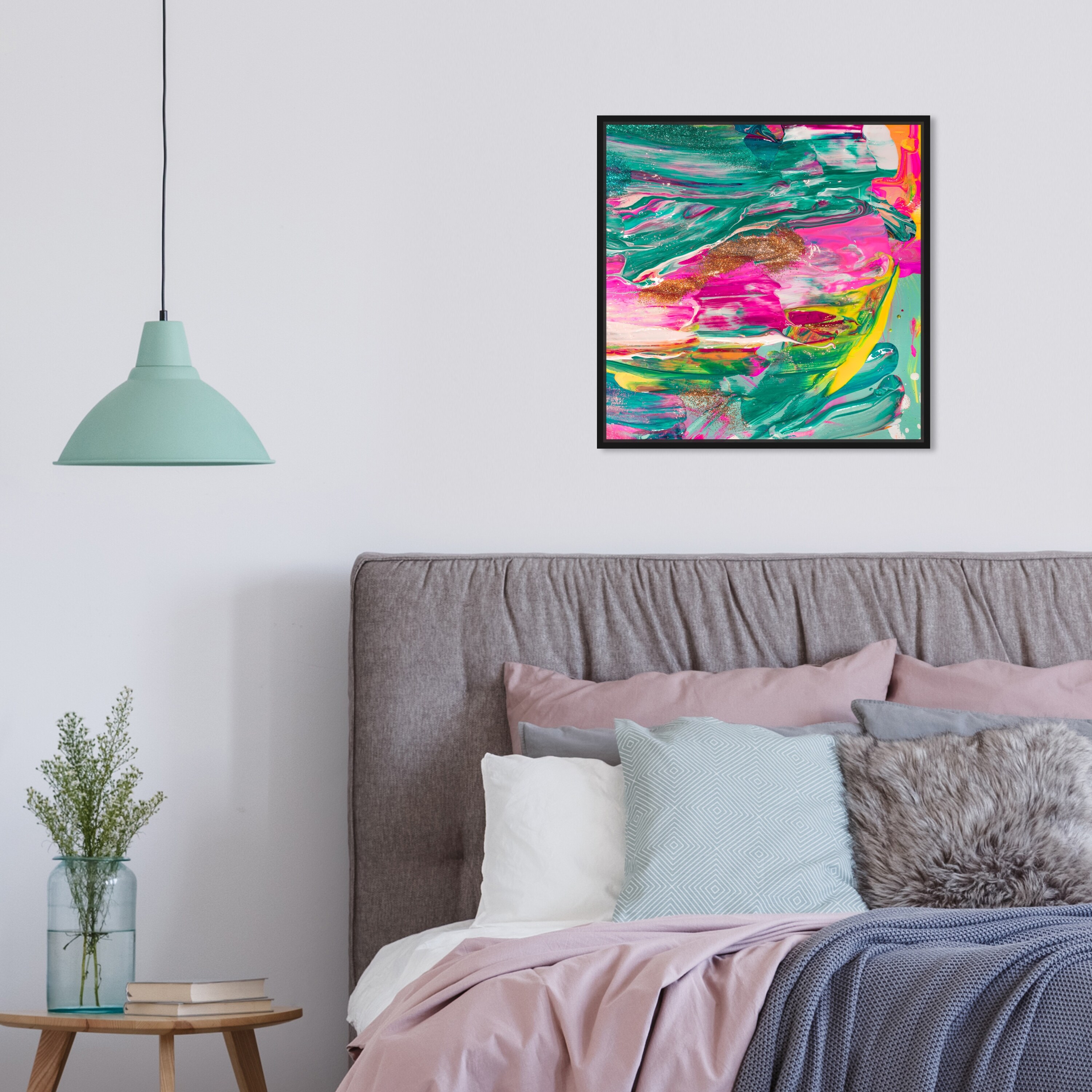Oliver Gal 'Modern Holly' Abstract Wall Art Framed Canvas Print Textures - Green, Pink