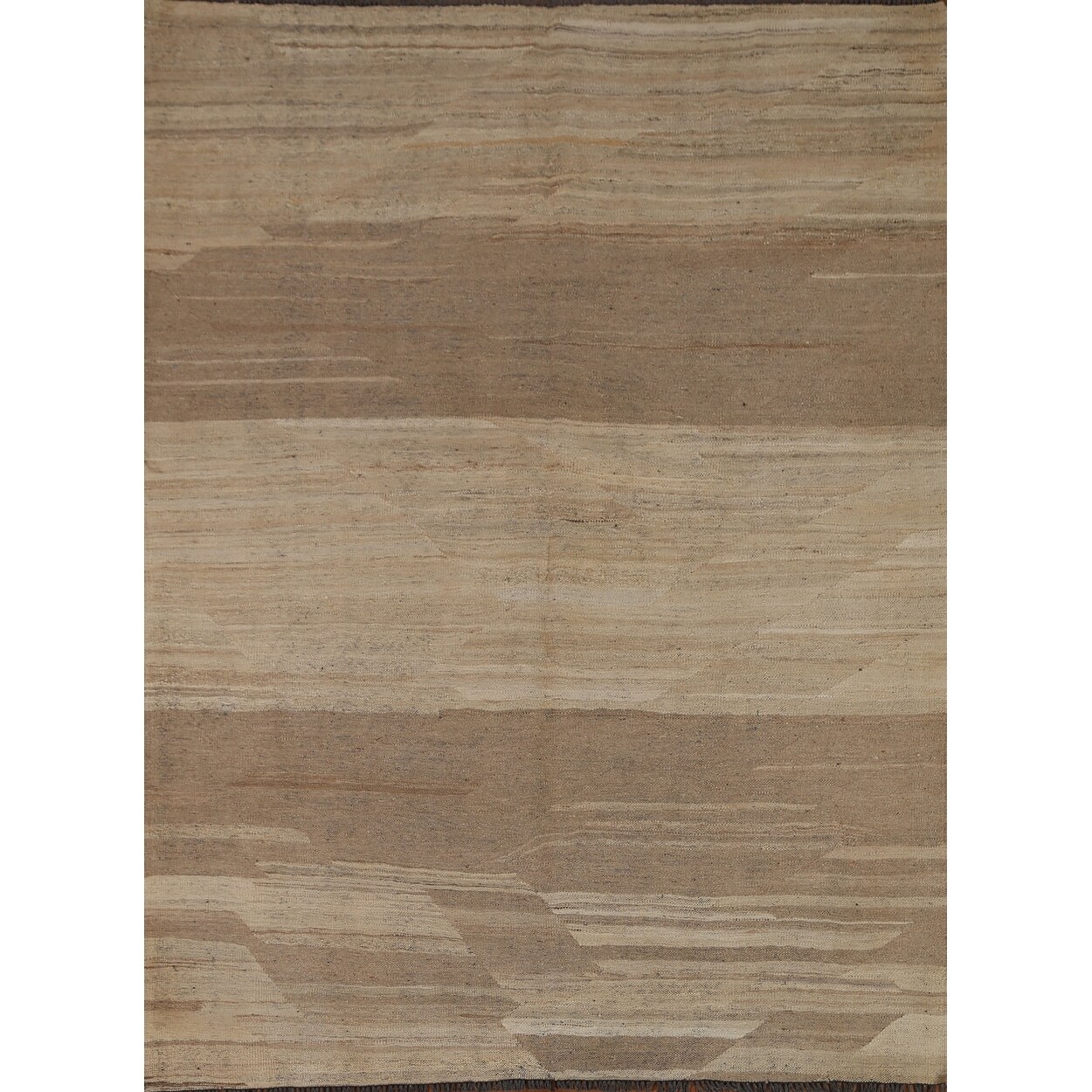 Natural Earth Tone Kilim Wool Modern Area Rug Reversible Carpet - 5'3''x 6'5''