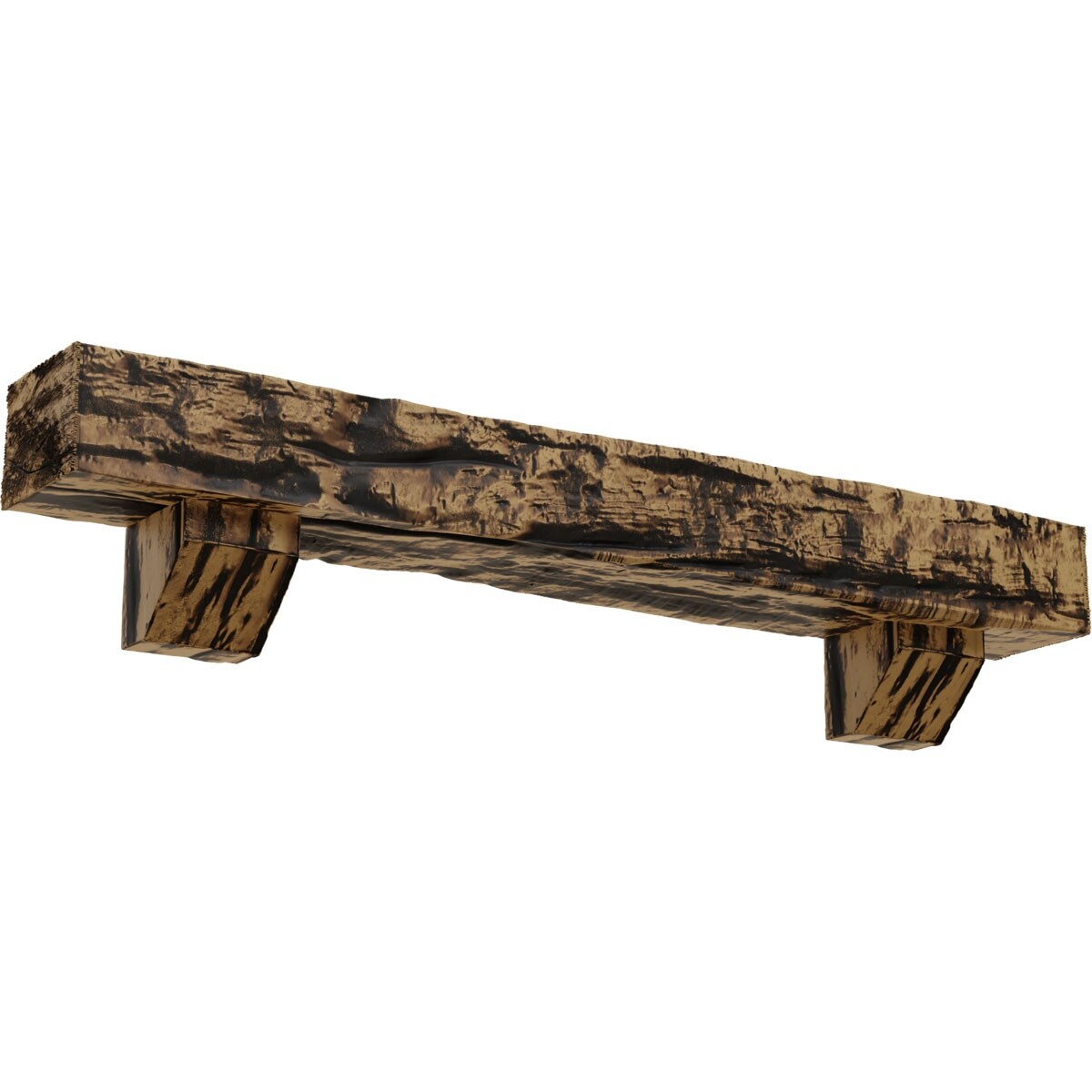 48"W Hand Hewn Faux Wood Fireplace Mantel Kit w/ Breckinridge Corbels