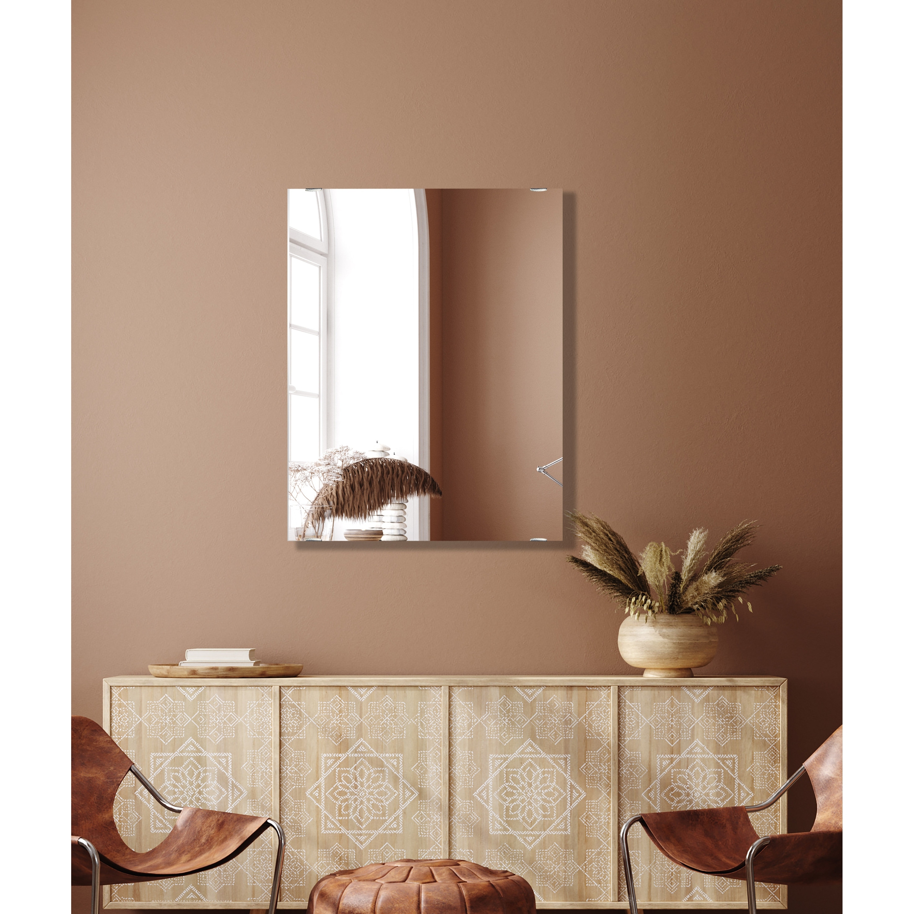 Modern Rustic Frameless Chrome Square Wall Mirror