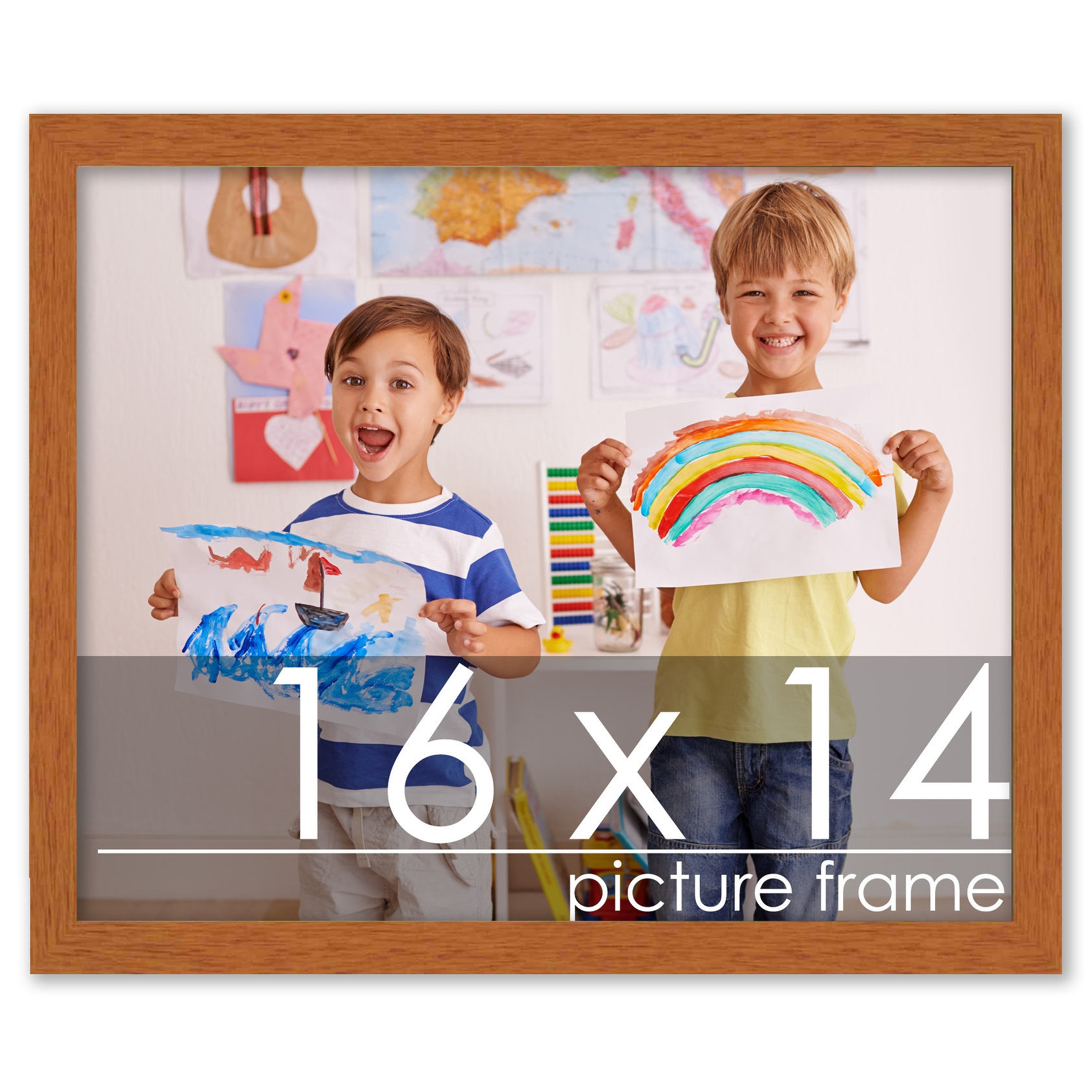 16x14 Traditional Honey Pecan Complete Wood Picture Frame with UV Acrylic, Foam Board Backing, & Hardware