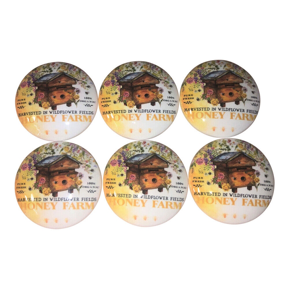 Set of 6 Wildflower Honey Farm Wood Cabinet Knobs - 1.5" Wide
